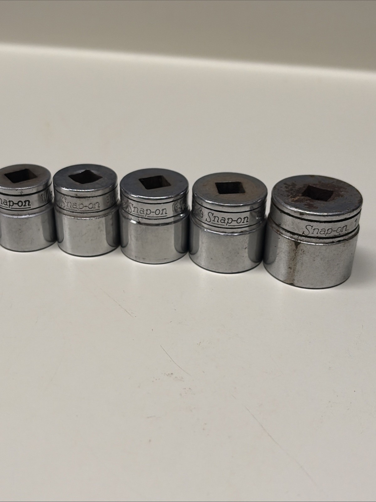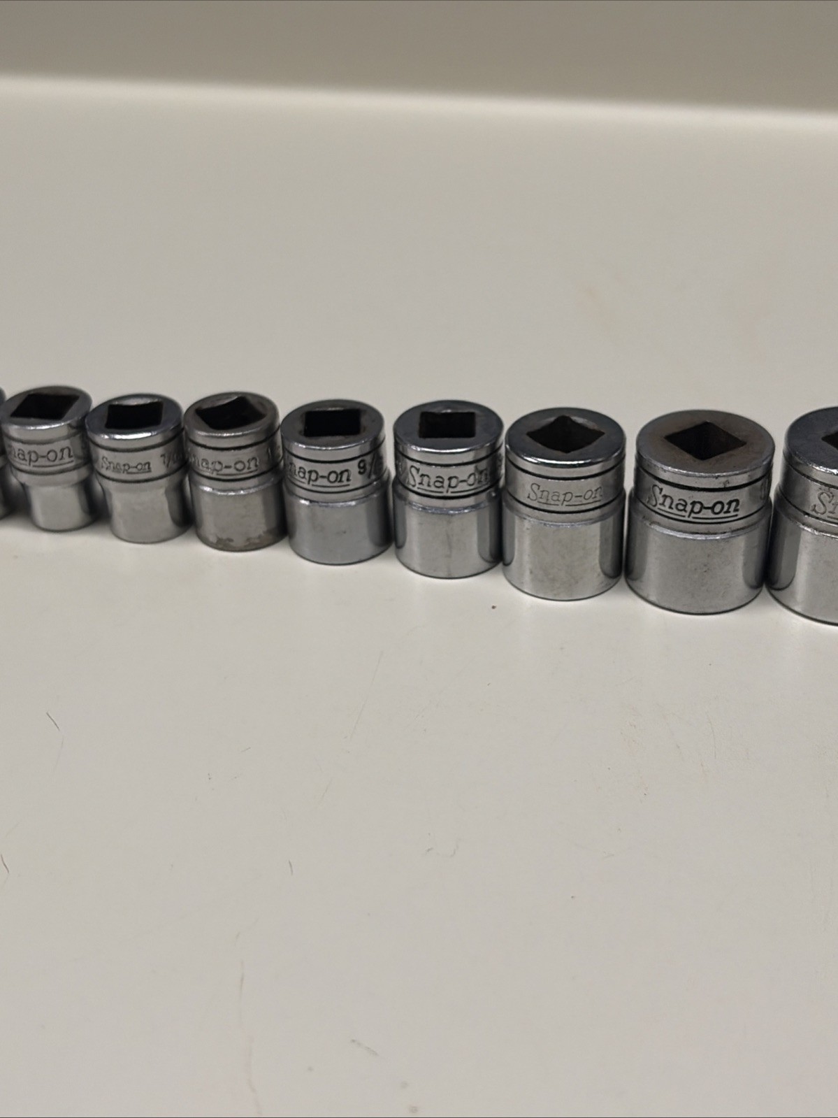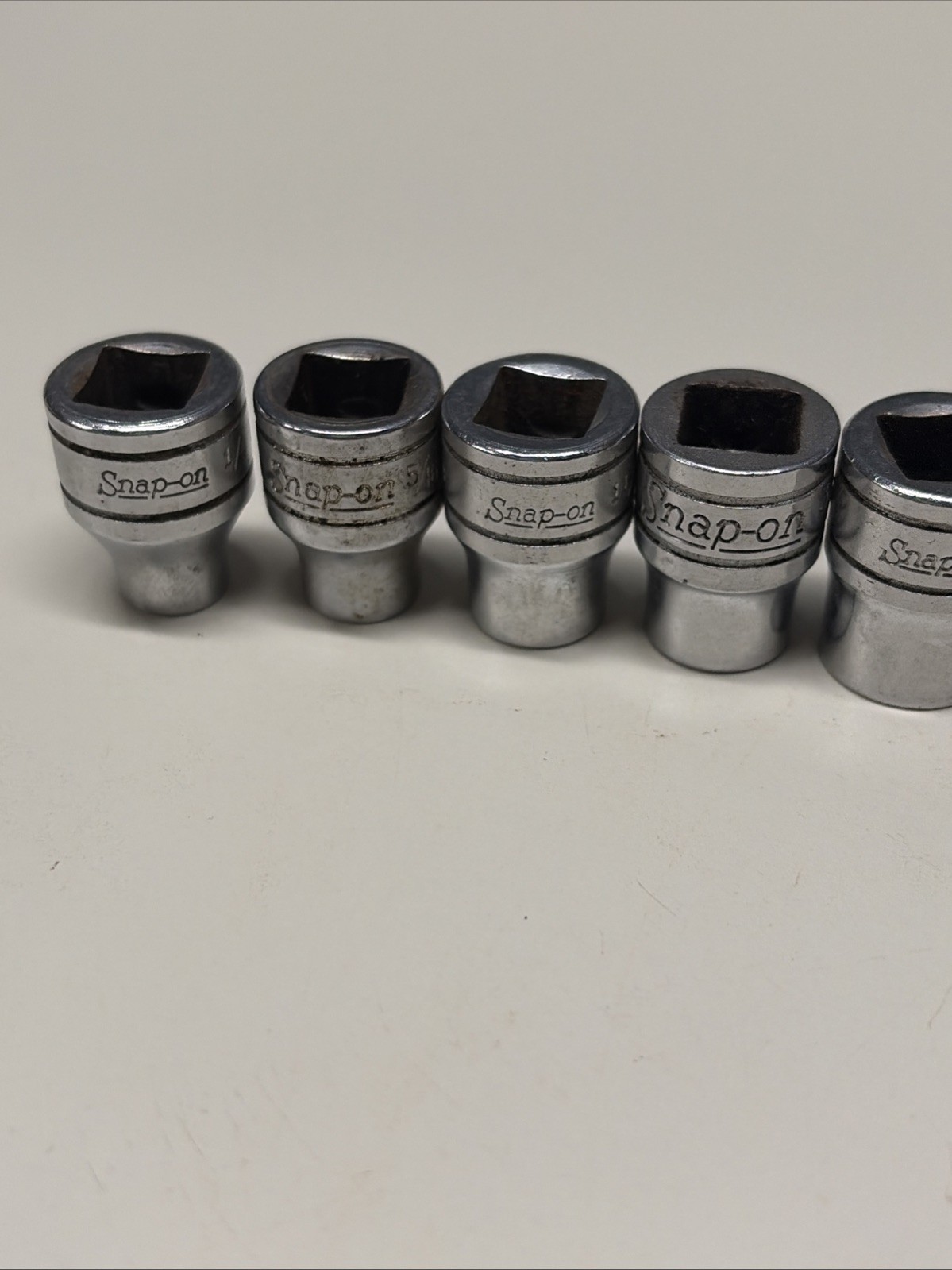 Good condition lot of 14 shallow snap-on sockets. Includes: