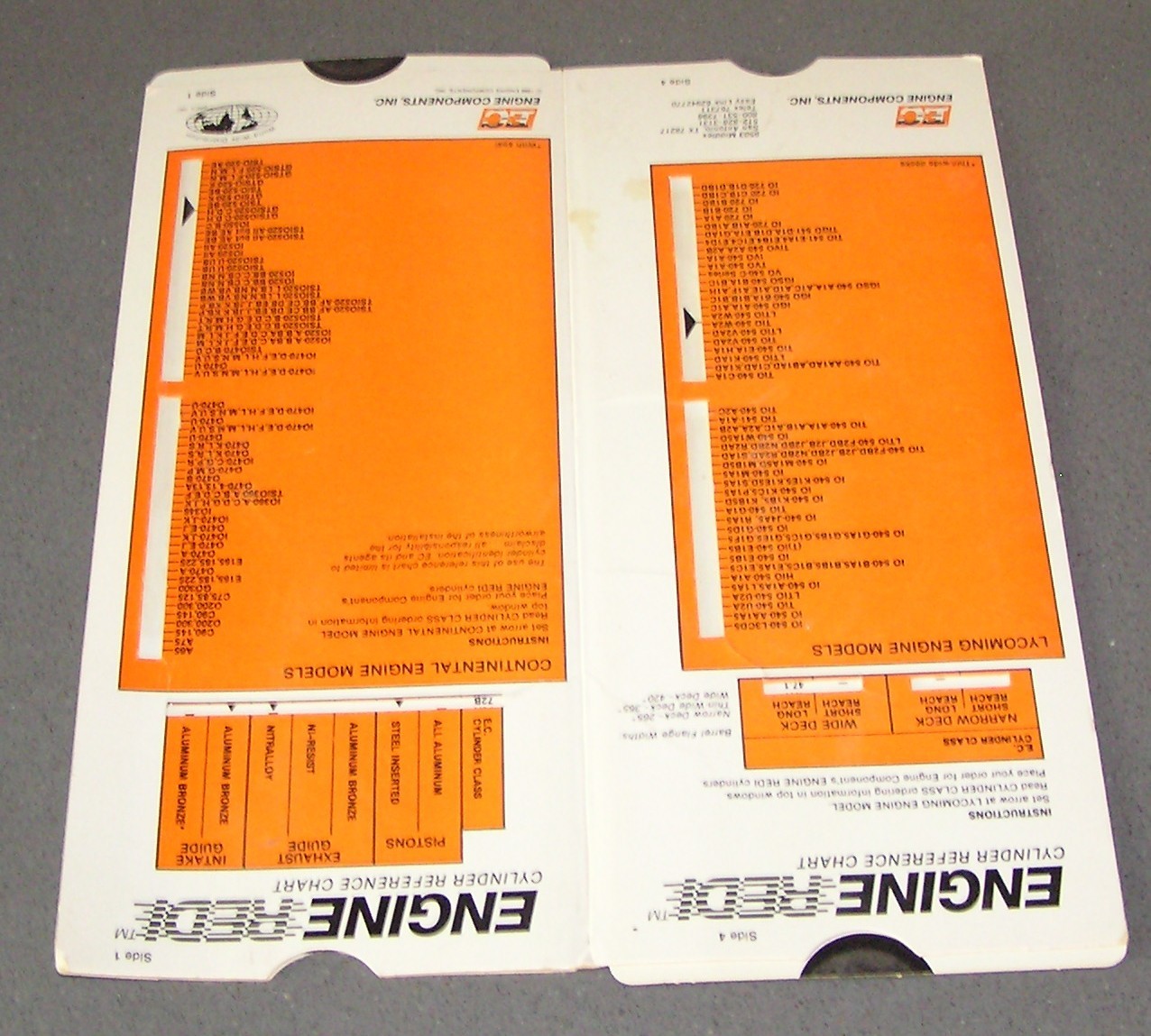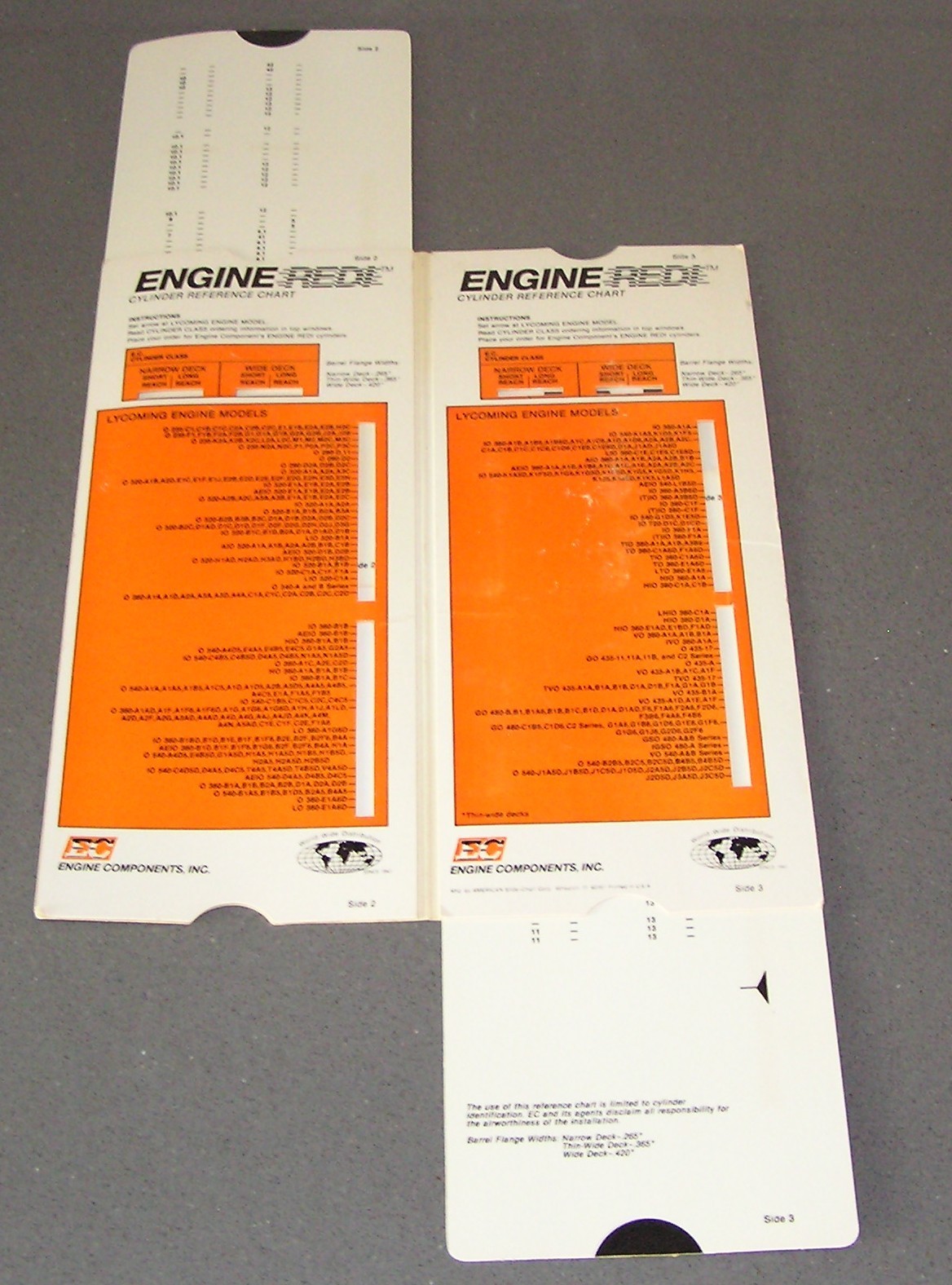 Engine Redi Cylinder Reference Chart 4 sides Lycoming Engine Models