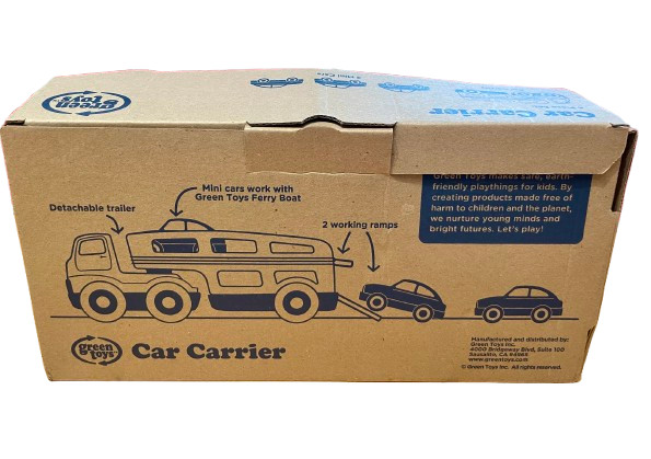 The double-decker Green Toys Car Carrier features two working ramps and space for three Mini Cars. With no metal axels or small parts, it’s great for both indoor and outdoor play, and encourages motor skill development and imaginative, creative play. The 5 piece set includes cab with detachable trailer and 3 brightly-colored Mini Cars.