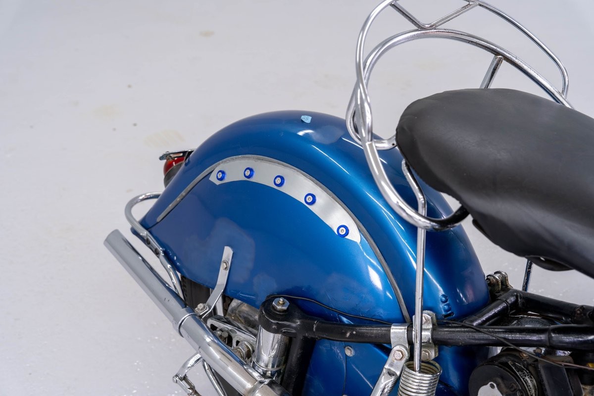 The Chief is powered by a 74 cubic inch/1200cc engine. This motor is a 2-cylinder, side-valve, 42-degree V-twin that was rated at approximately 40hp. A 3-speed transmission with right-hand 'suicide' tank-shift uses a gear-drive primary system and right-side final chain drive. The 1946 model introduced new hydraulic dampened, girder-style coil-spring forks derived from military models. These springs provided 5 inches of travel, a significant improvement on the earlier leaf-spring designs. The rear utilized a plunger-type suspension and mechanical drum brakes were fitted front and rear. Without question, this is a wonderful example of a handsome, original Indian Chief that belongs in your motorcycle collection.