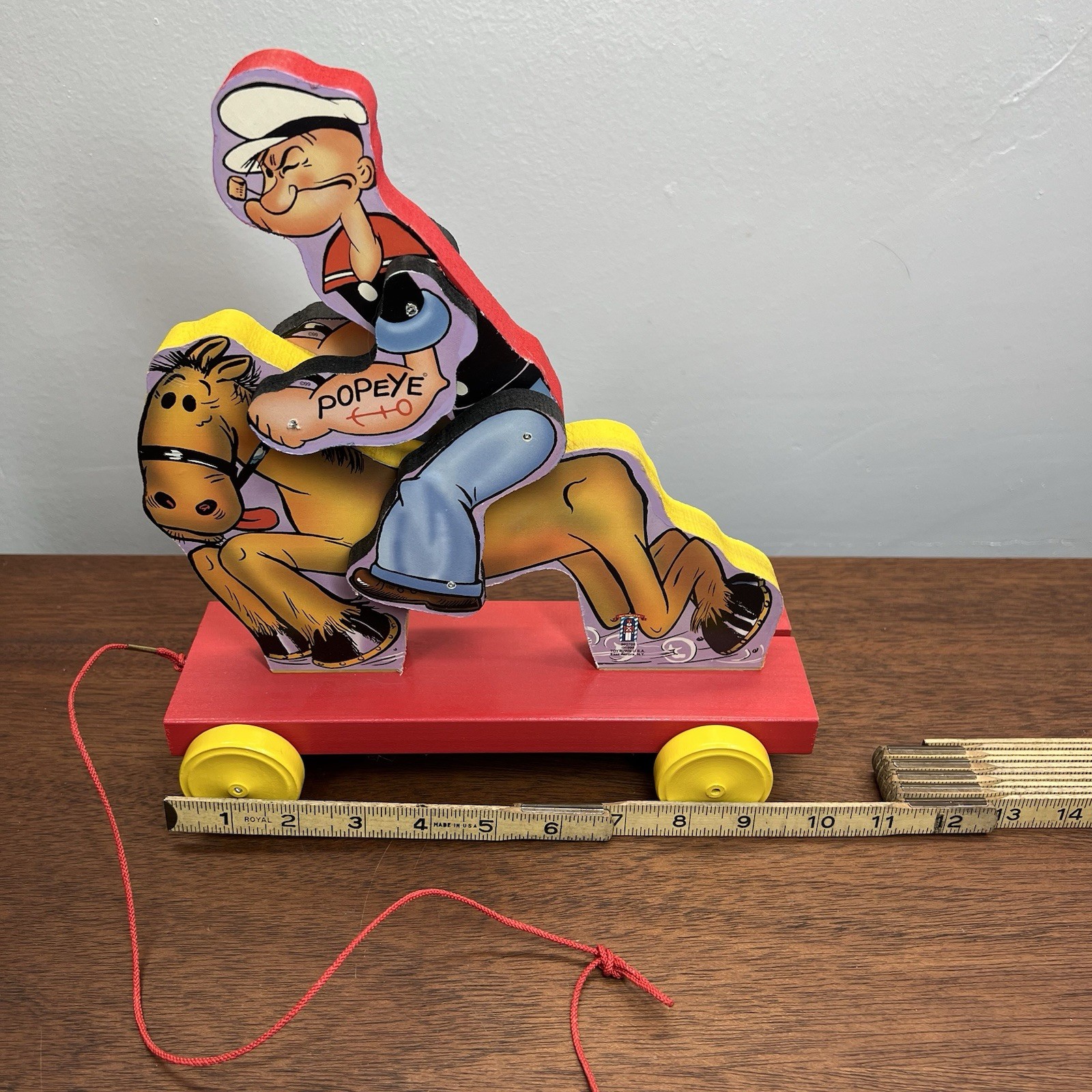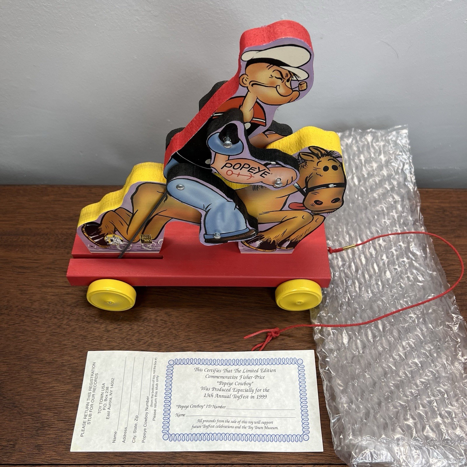 Fisher-Price Toys Popeye Cowboy Wooden Pull Toy Blue Box 1999 Made In USA NEW
