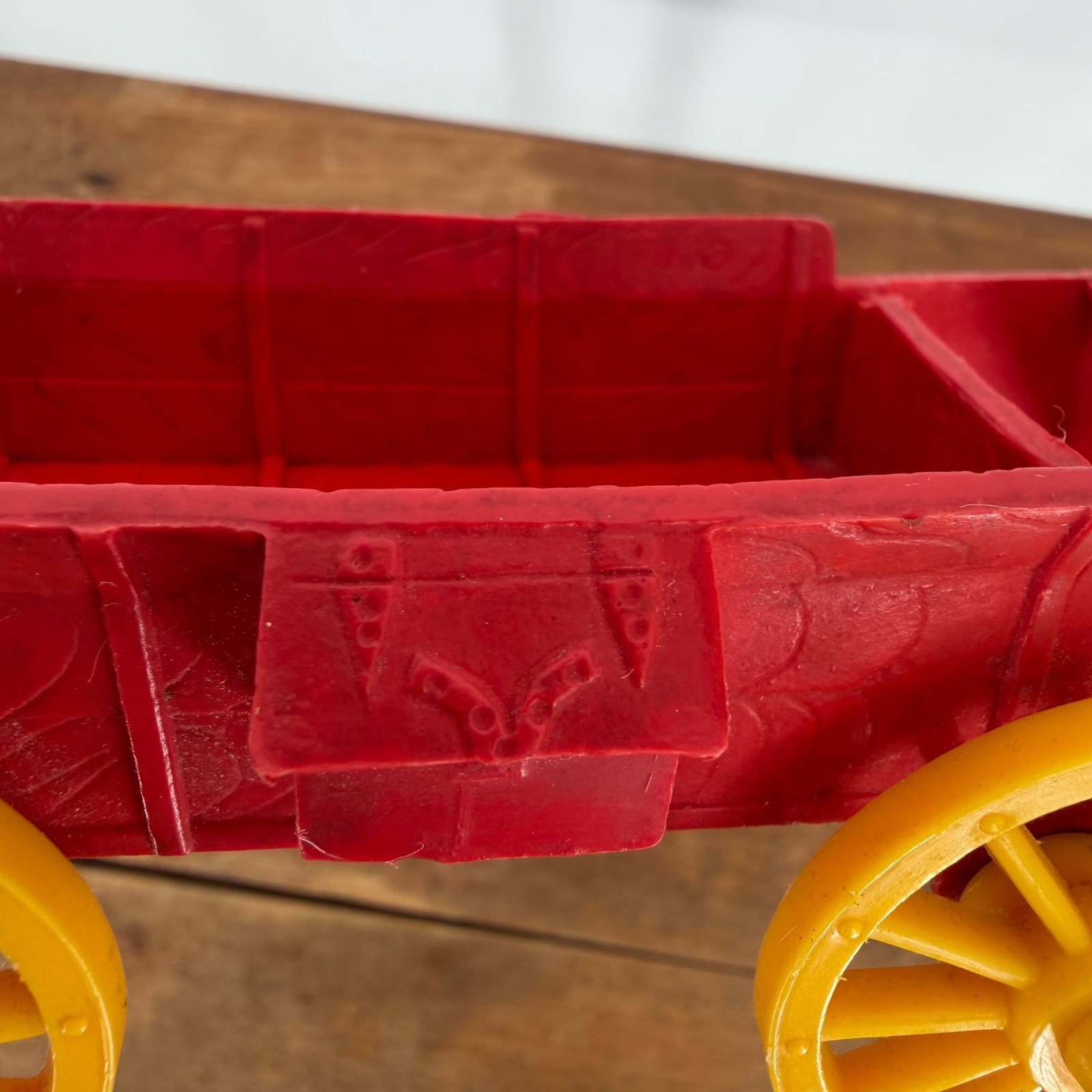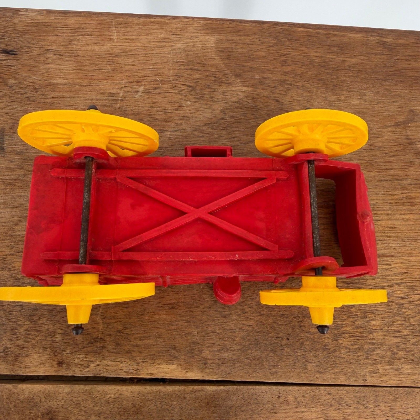 VTG 50s Auburn Rubber Co. Toy Western Red Wagon with Yellow Wheels - Made in USA