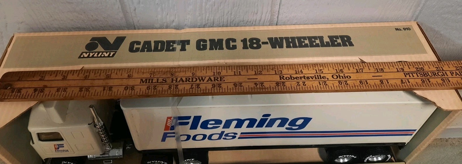 Vtg 1980s NYLINT GMC Cadet Semi Truck Fleming Foods Private Label Made in USA