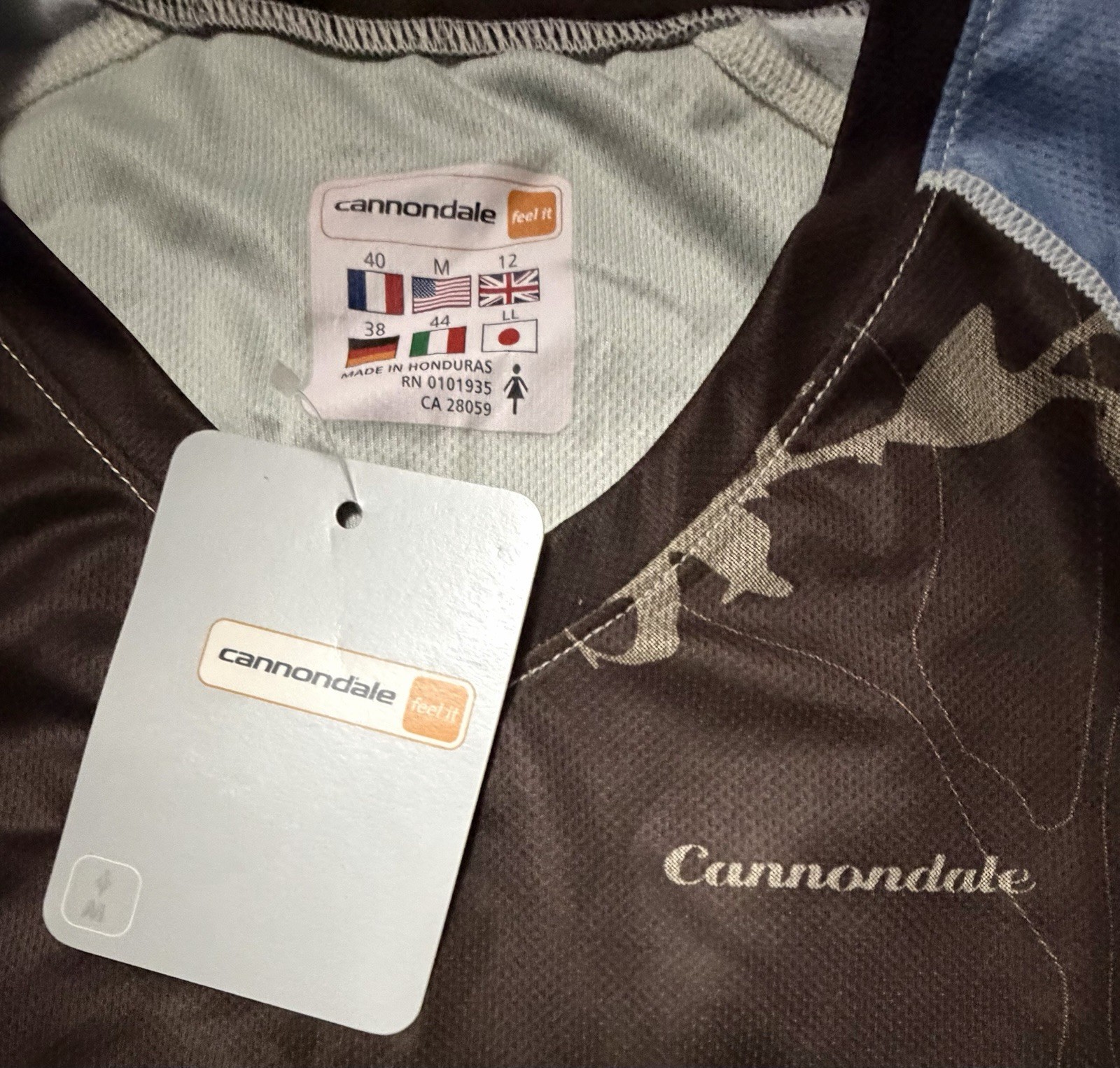 NWT Rare Cannondale Singletrack Cycling Jersey Women’s Medium Brown Blue 3/4 Sleeve Embroidered Detailing