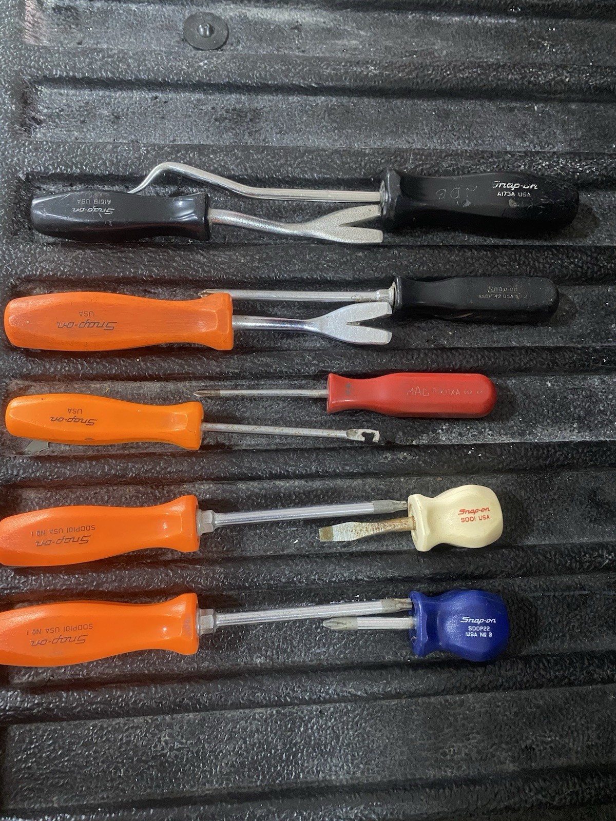 Miscellaneous lot of Snap On Phillips Screwdrivers , Torx t25 and t30 Screwdrivers, Clip tools, Cotter pin puller, Stubbies straight and Phillips and a Headlight spring tool
