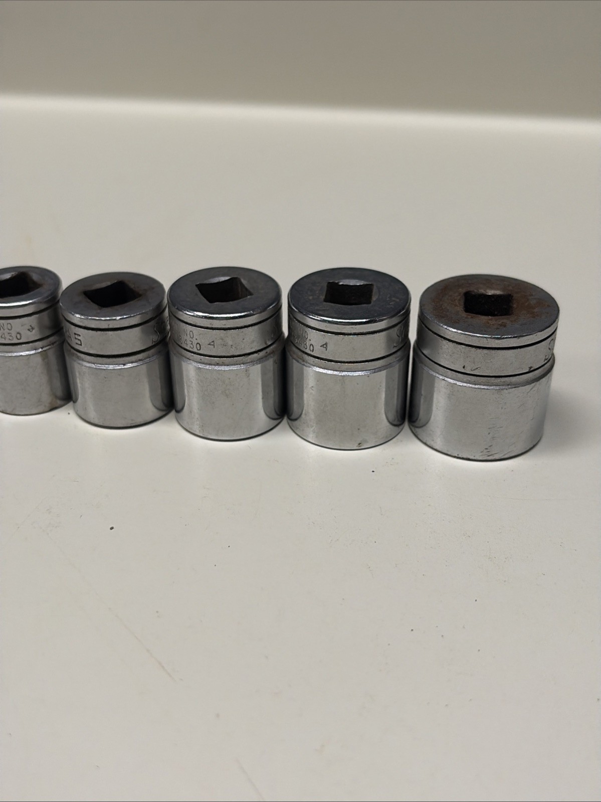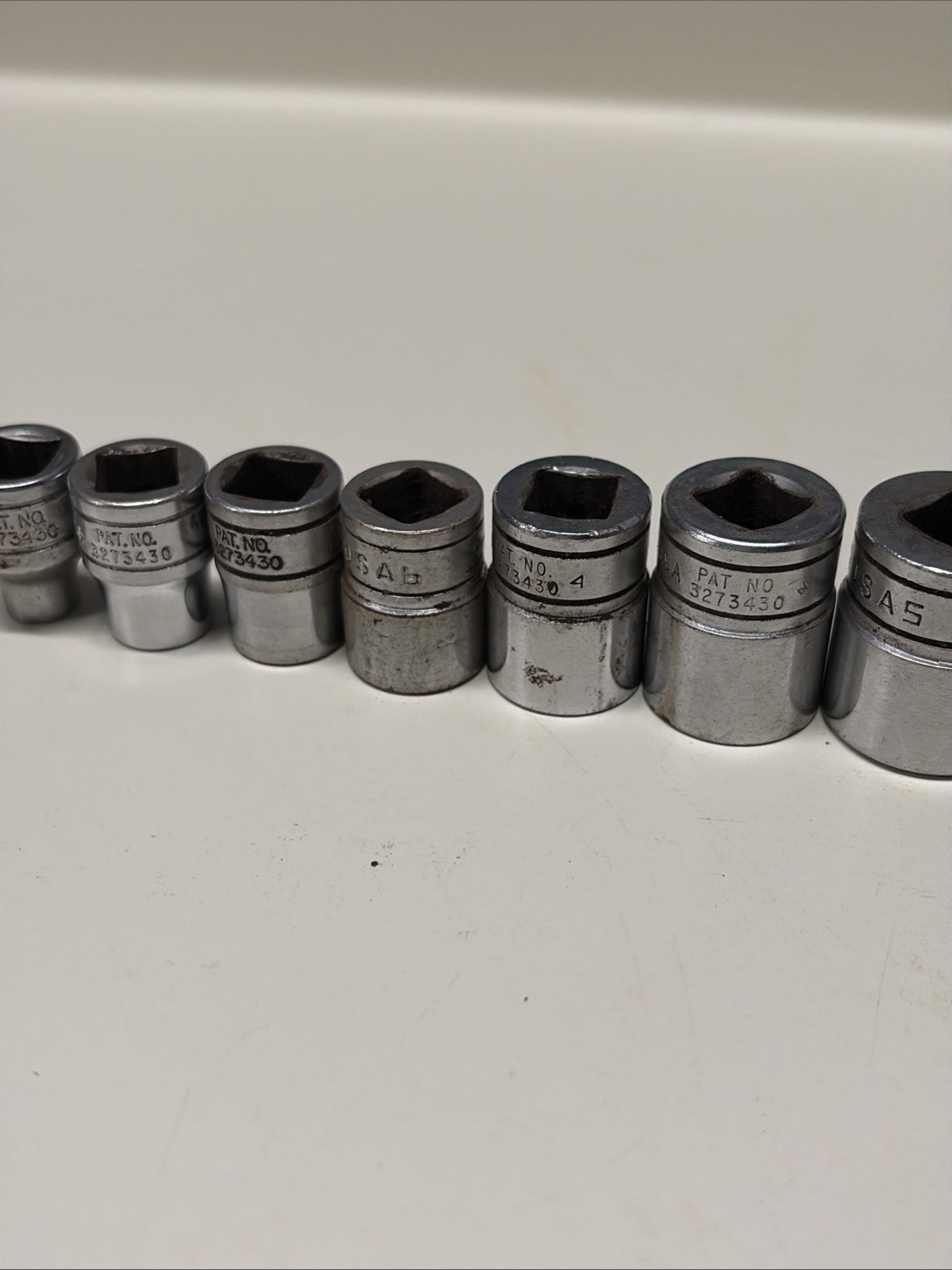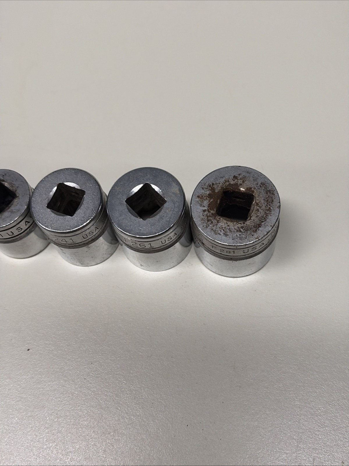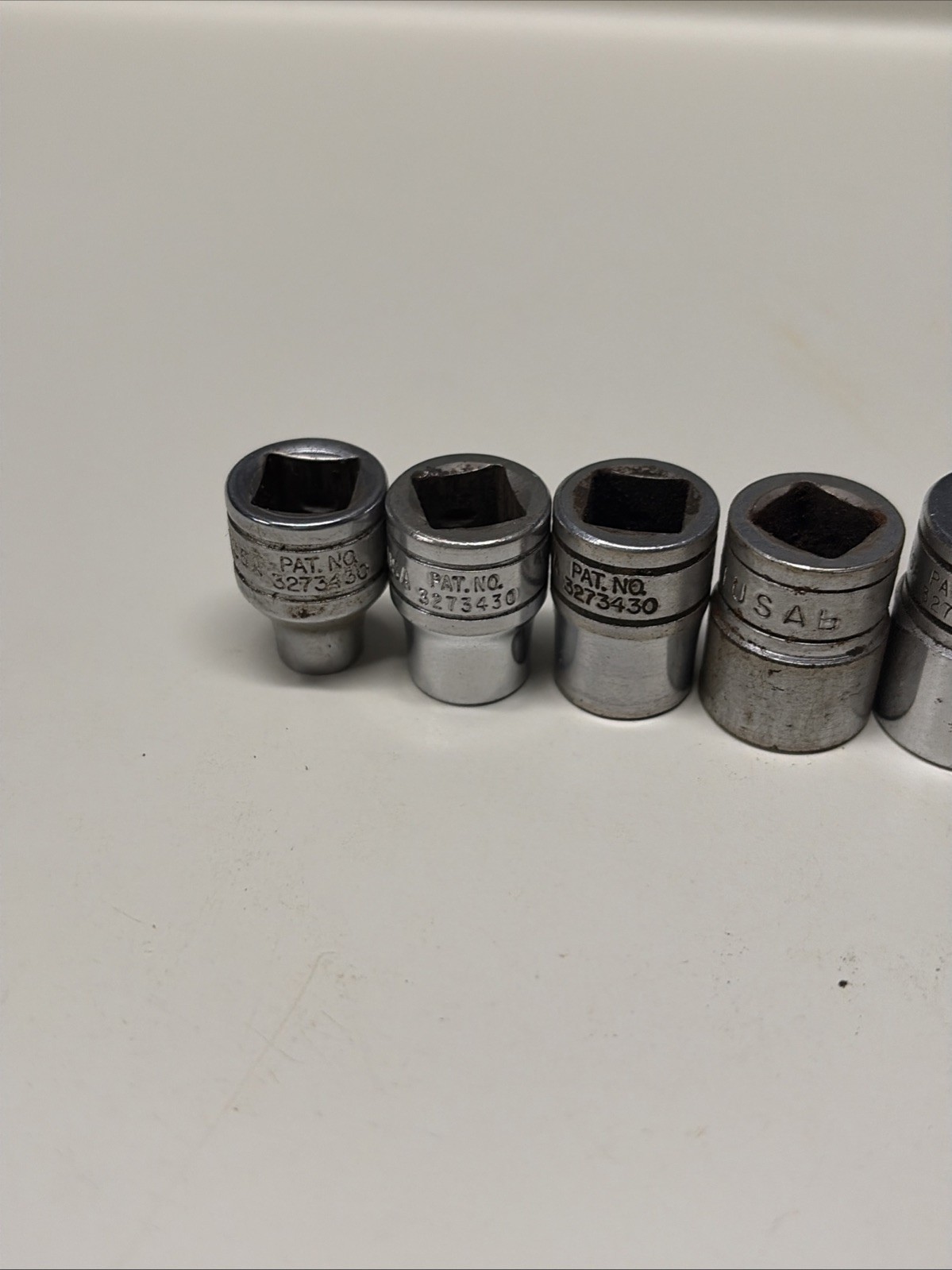 Some of these have slightly different fonts appearing to be from different original sets, but all are the same âFâ series 3/8â drive 12 point sockets.