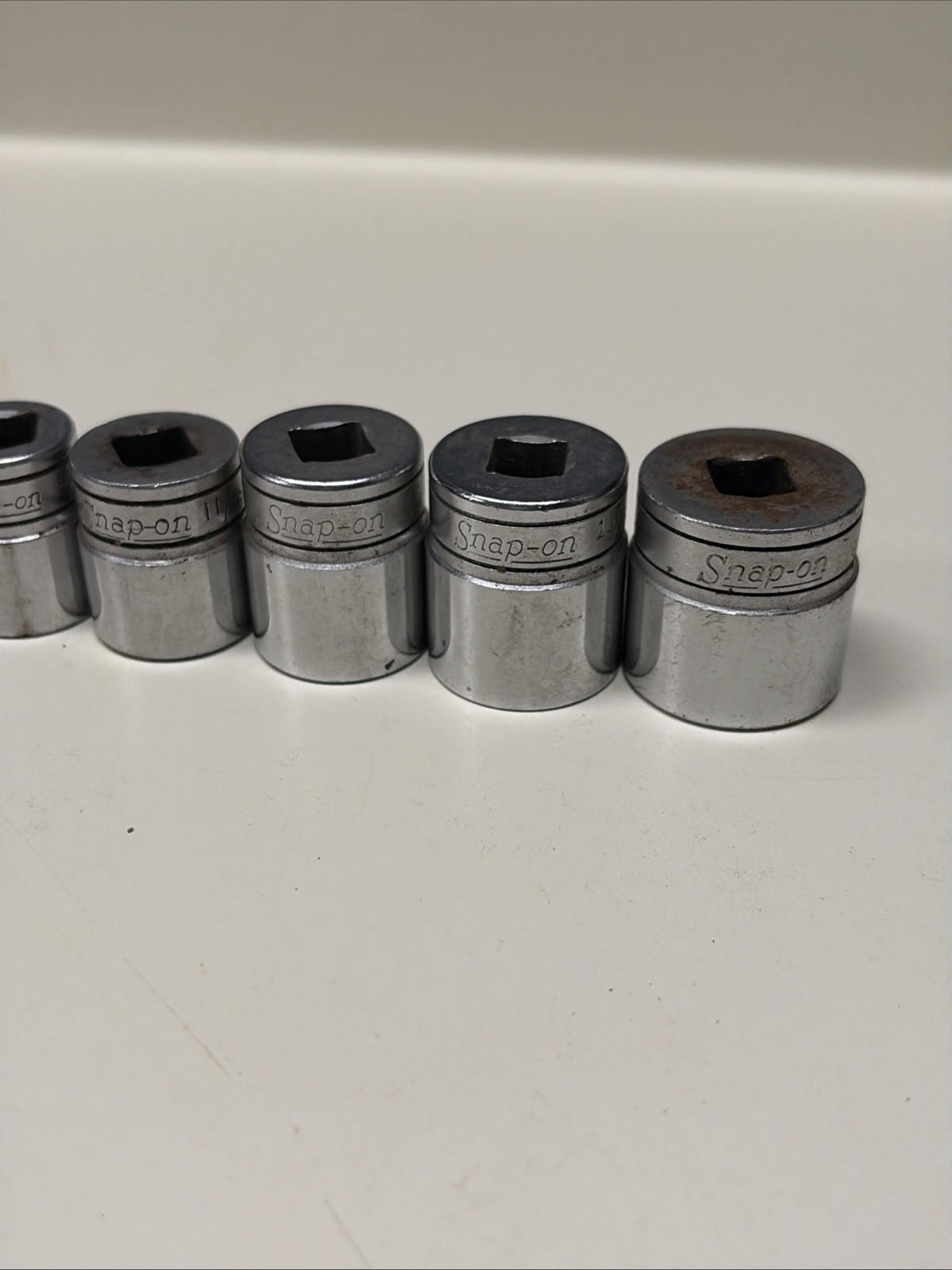 Good condition lot of 10 shallow snap-on sockets. Includes: