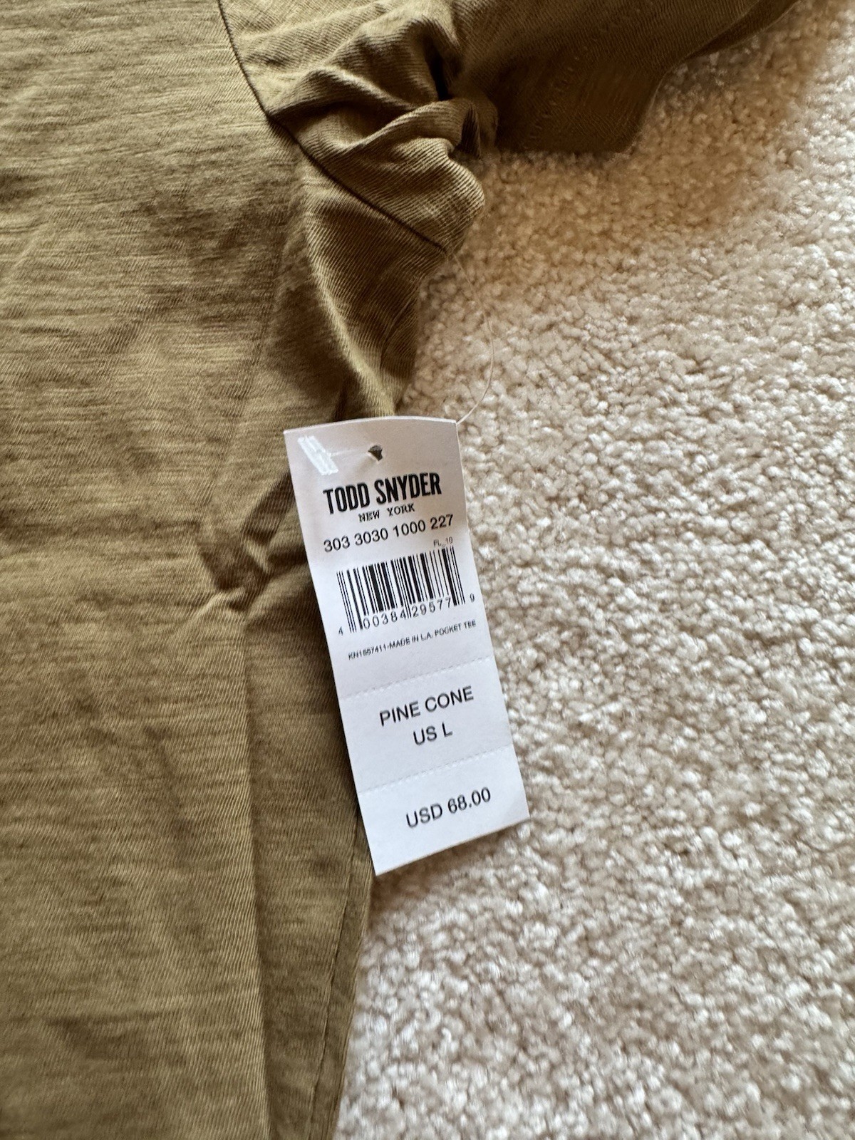 Todd Snyder Made in USA Pocket T Shirt Pine Cone Brown Mens L NWT