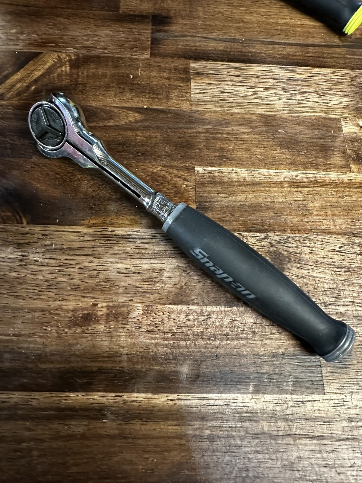 Up for grabs is a New and Unused Snap On FHCNF72 3/8" Drive DARK TITANIUM Soft Grip 180° Round Head Ratchet.