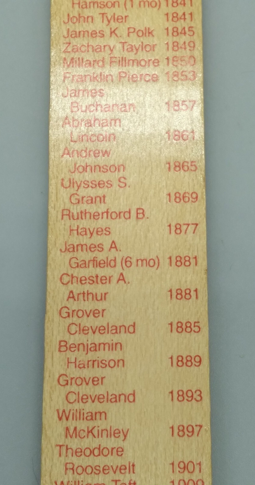 Rich Frog Industries Made in USA 2001 Wooden 12" Ruler US Presidents