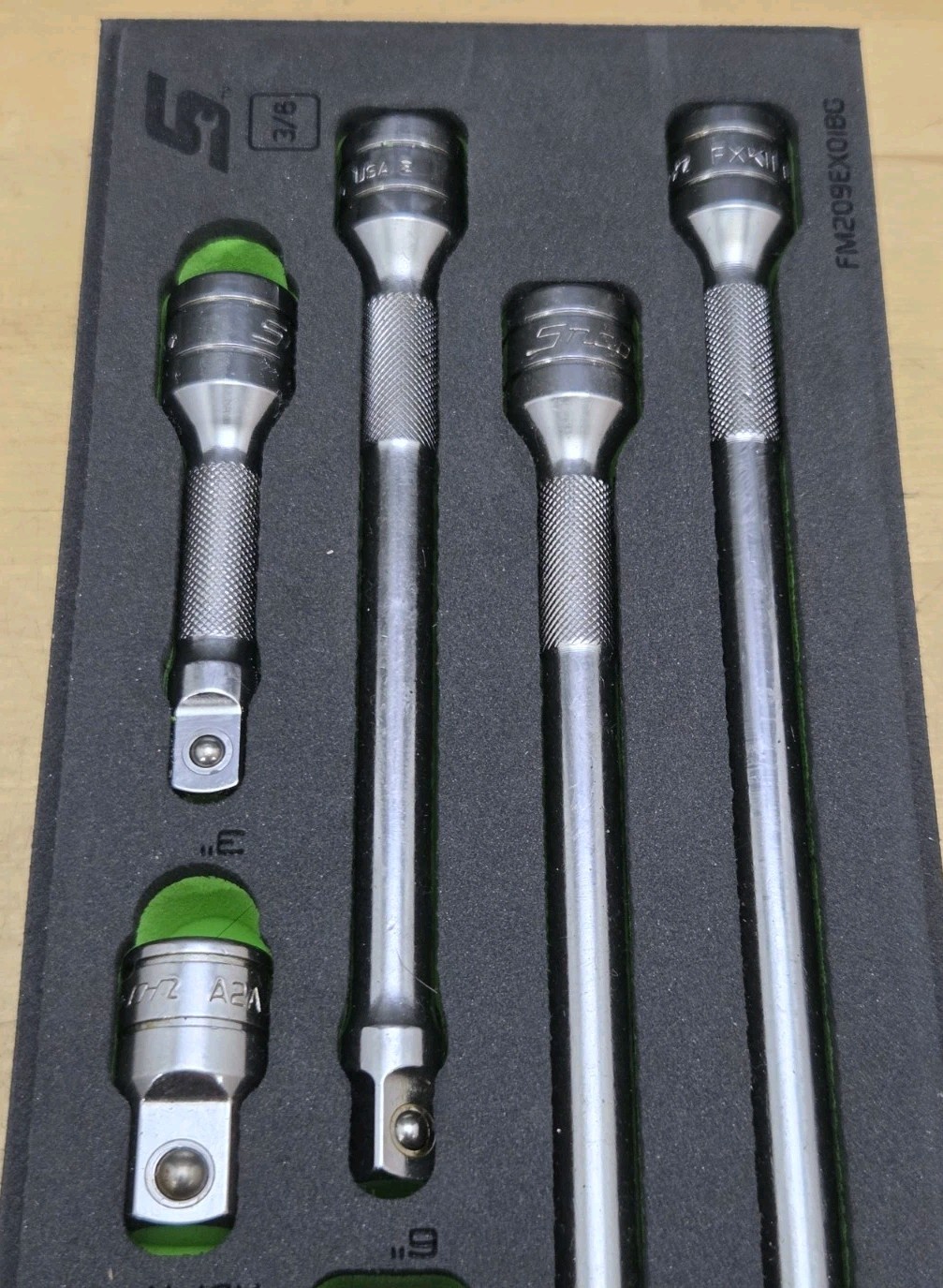New Snap On 209AFXAFR - 3/8" Drive 9 Pc Extension & Adapter Set With Foam Tray