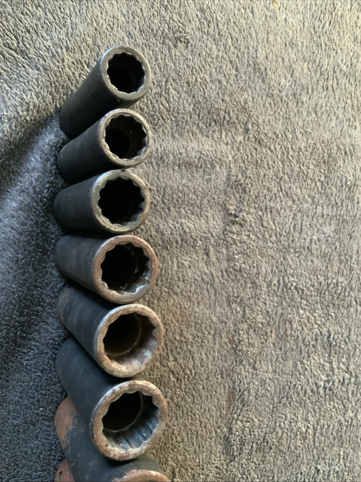 Has surface rust….see pics…sizes are, 1/2, 9/16, 5/8, 11/16, 3/4, 13/16, 7/8, 15/16, 1”, 1 1/16, 1 1/8, 1 3/16, 1 1/4
