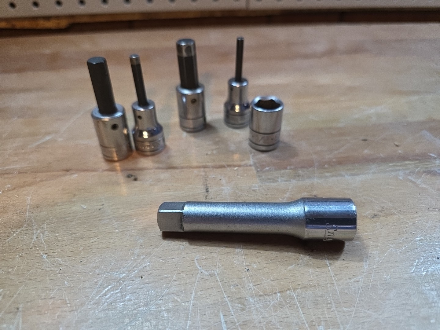 This is what is included a 3/8 extension 3 inch, a sk socket 45116 size 1/2 , a snap on 5/32 fa-5a Allen socket ,snap on 3/8 fa-6a Allen socket,snap on 5/16 fa-10b Allen socket,thd last snap on 3/8 fa -12a Allen socket. All good working order.