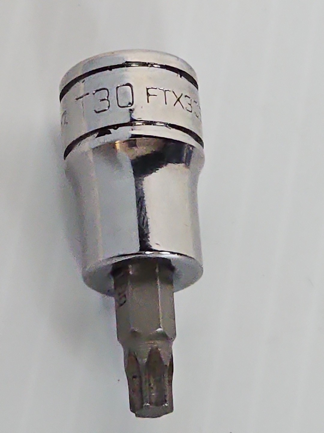 This listing is for a brand new Snap-on T30 Torx bit chrome socket, part number FTX30E, proudly made in the USA. Designed for professional-grade performance and durability.