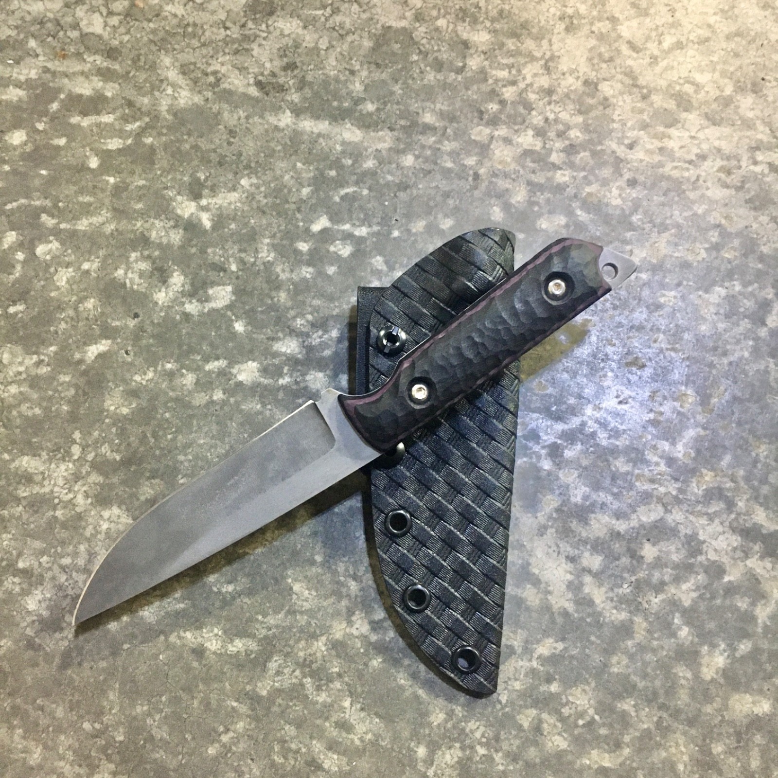 stone textured G-10 handle scales - black wand purple