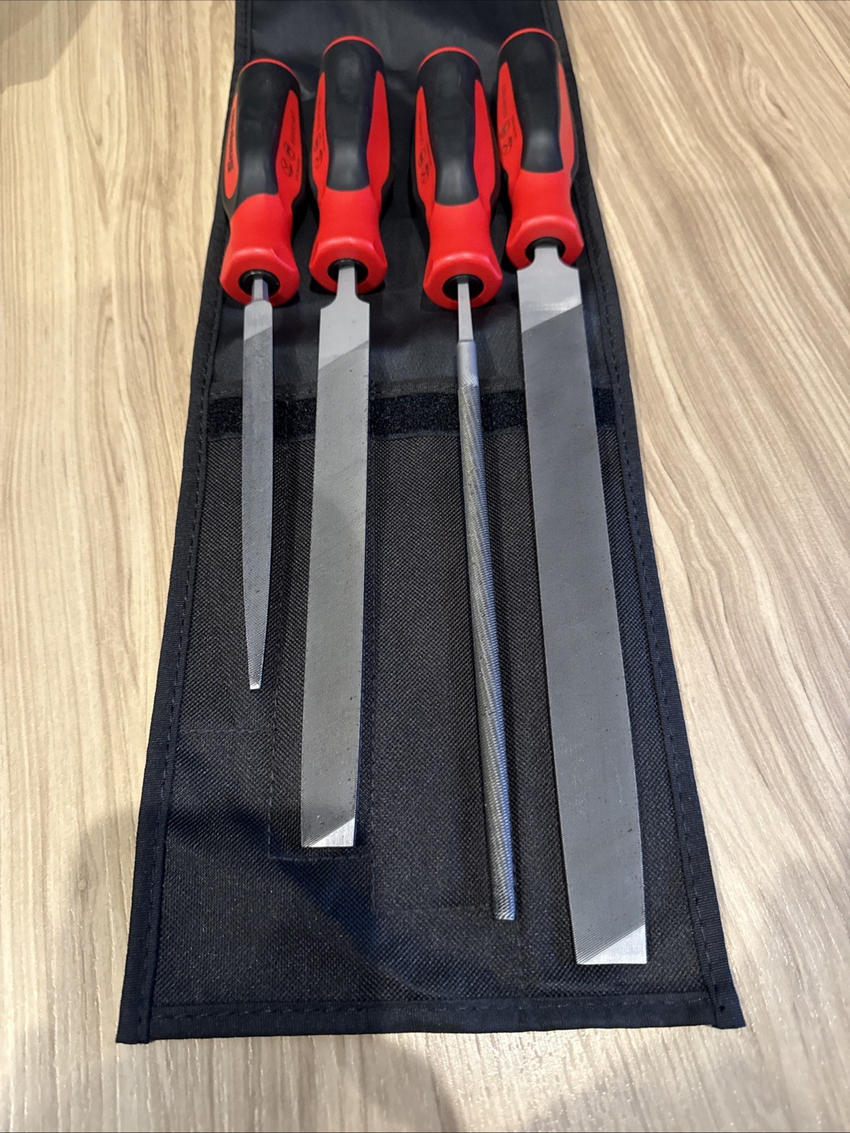 SNAP ON TOOLS SGHBF500A 4pc Red Instinct Soft Grip Handle Mixed File Set