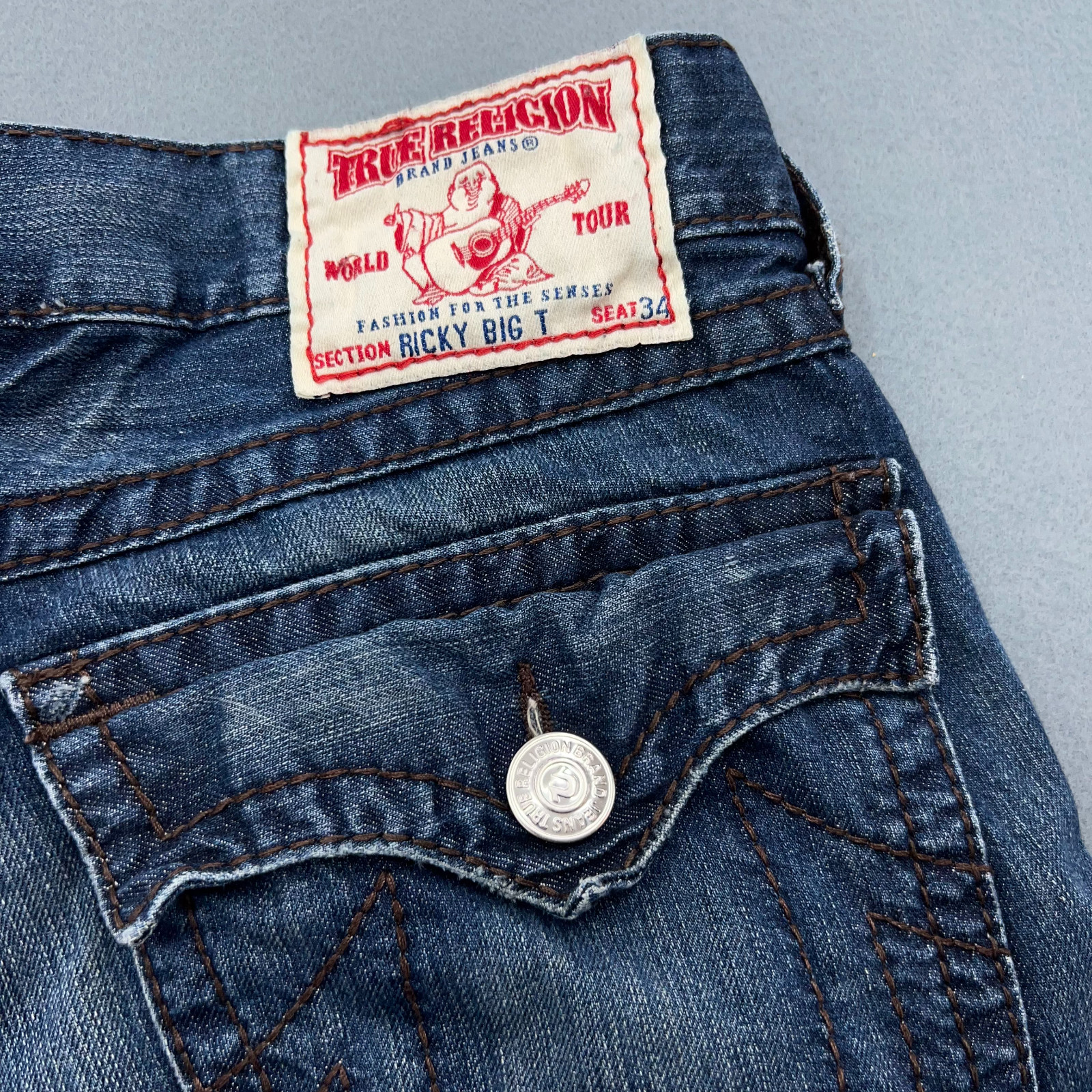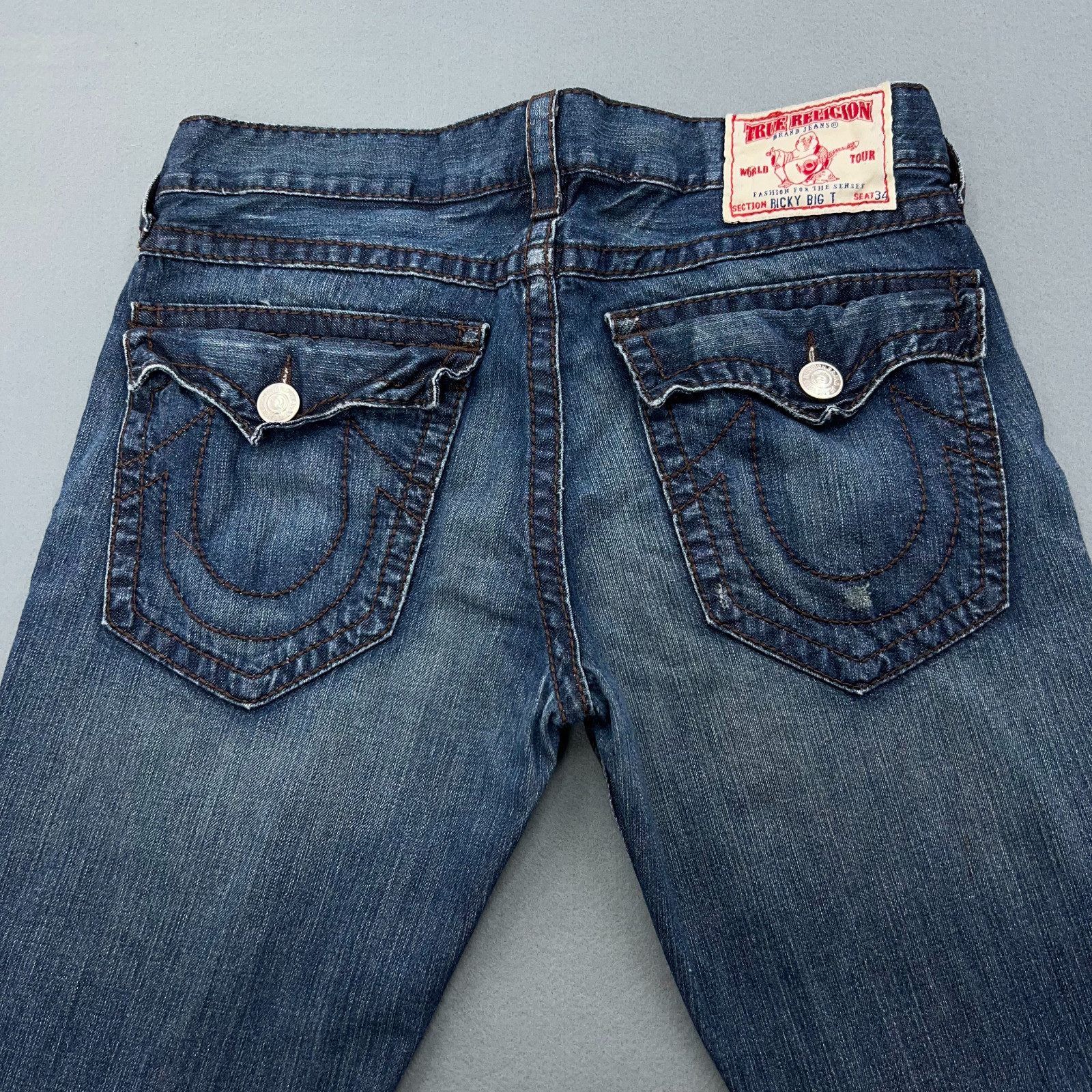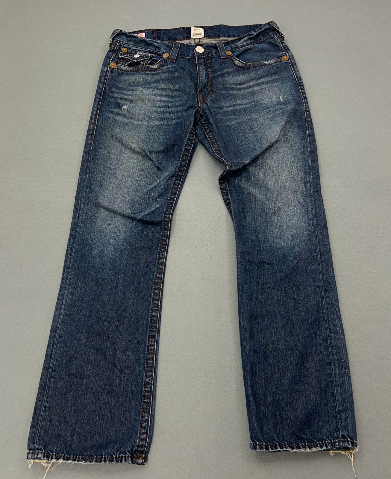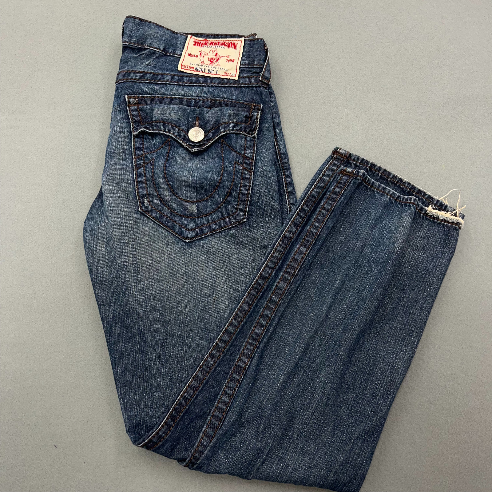 TRUE RELIGION Ricky Big T Men's 34x34 Distressed Button Fly Flap Made in USA