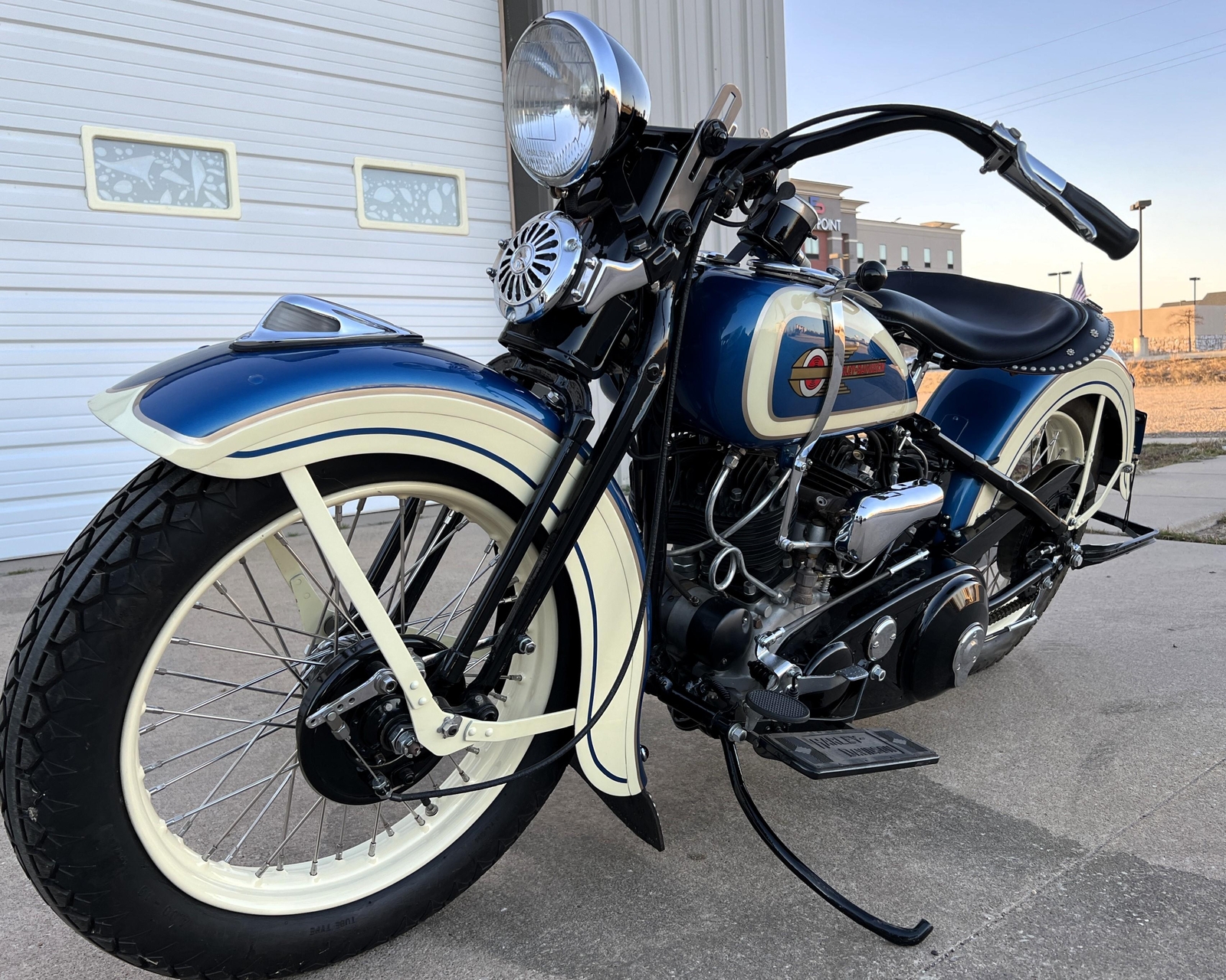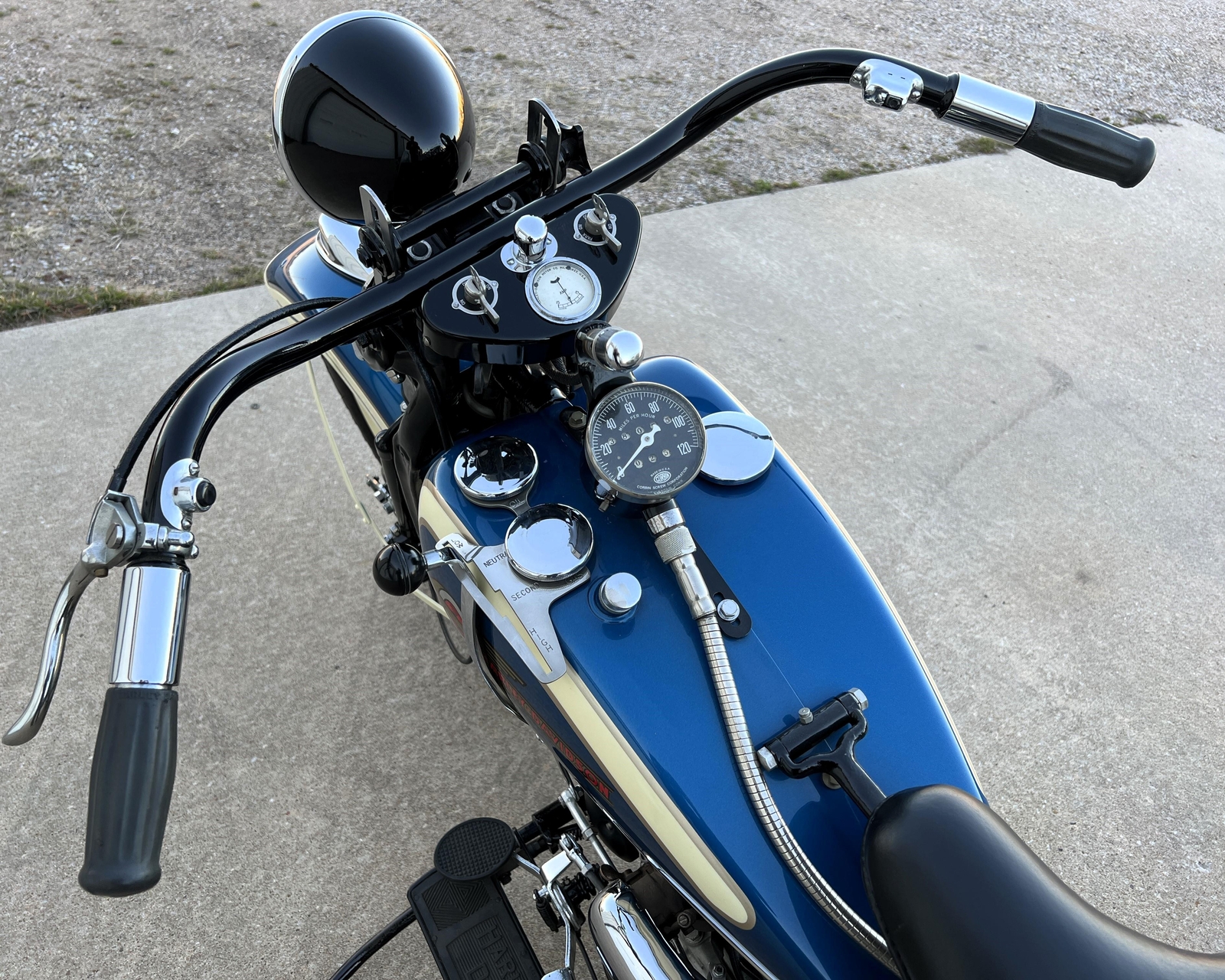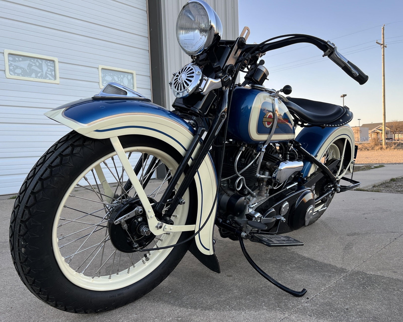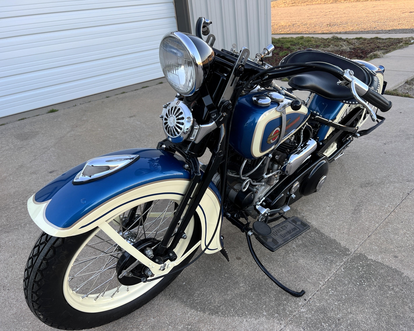 Additional Descriptions of Motorcycle: This is the last year of the VL model and this one is pretty correct. Features are the 1936 Front Fork and Spring Cover, 1936 Rocker Clutch, Ride Control, Horn Mounts, 36 9-bolt cylinders, CycleRay Headlight. The Solo seat has been recovered by Heathers Leathers and has some great rosette ornaments for some style. 120 MPH Corbin Speedometer