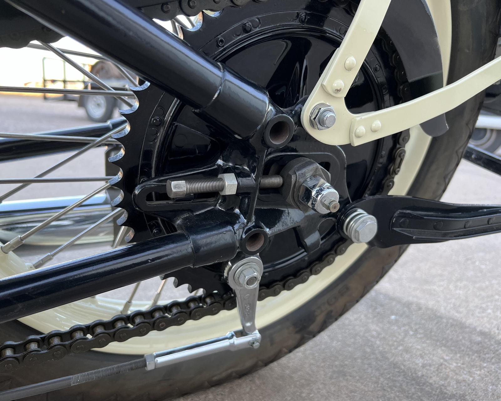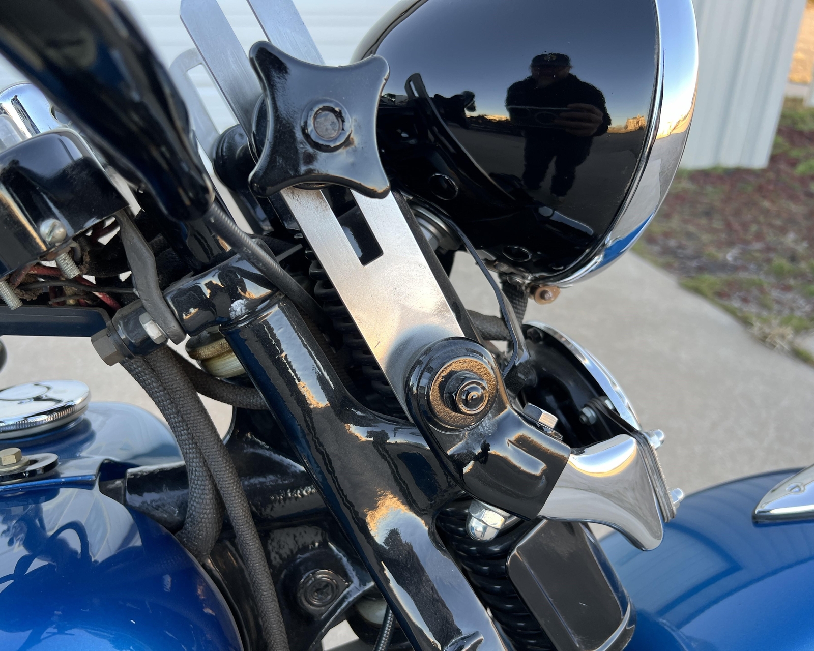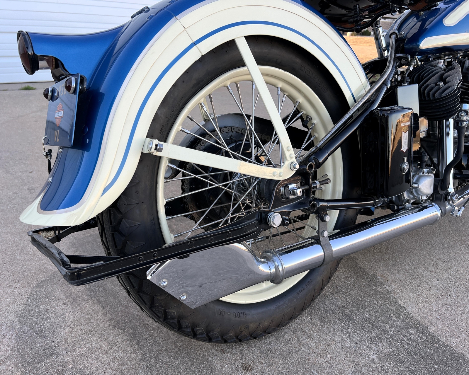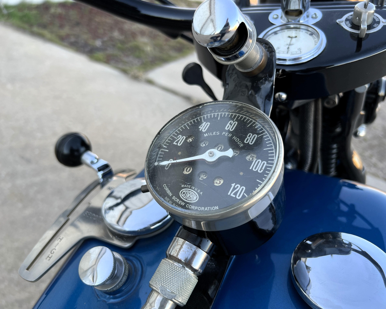 Additional Descriptions of Motorcycle: This is the last year of the VL model and this one is pretty correct. Features are the 1936 Front Fork and Spring Cover, 1936 Rocker Clutch, Ride Control, Horn Mounts, 36 9-bolt cylinders, CycleRay Headlight. The Solo seat has been recovered by Heathers Leathers and has some great rosette ornaments for some style. 120 MPH Corbin Speedometer