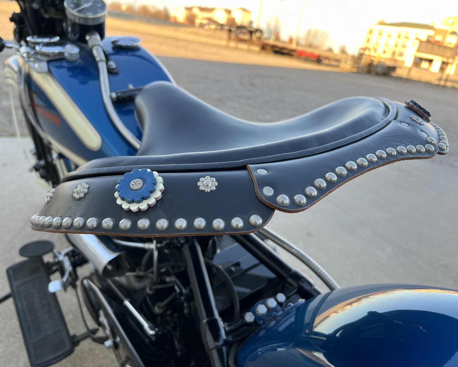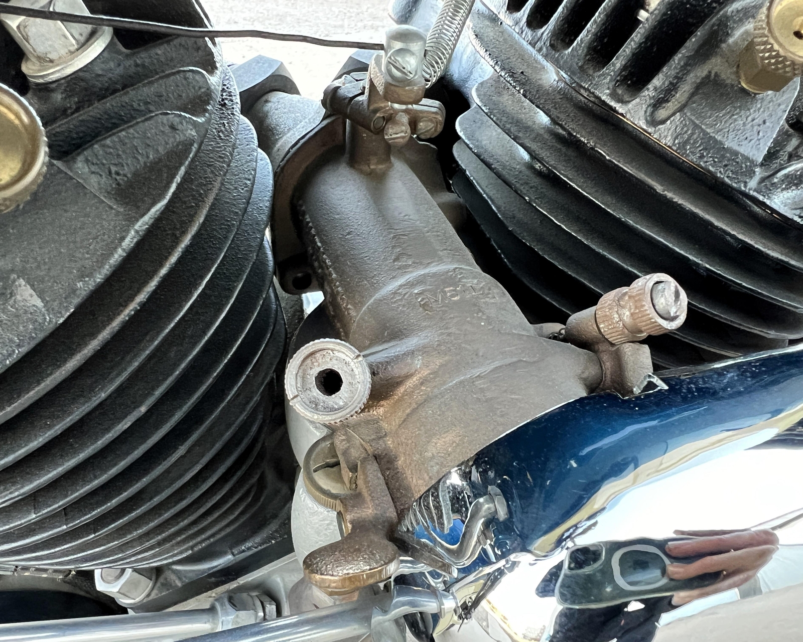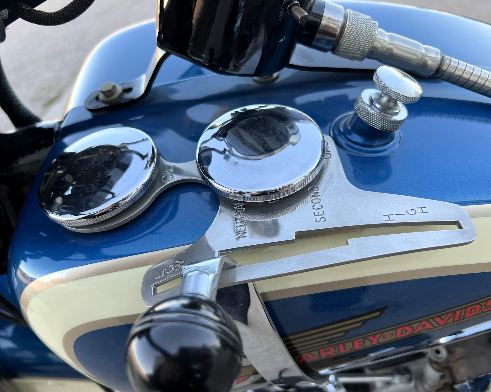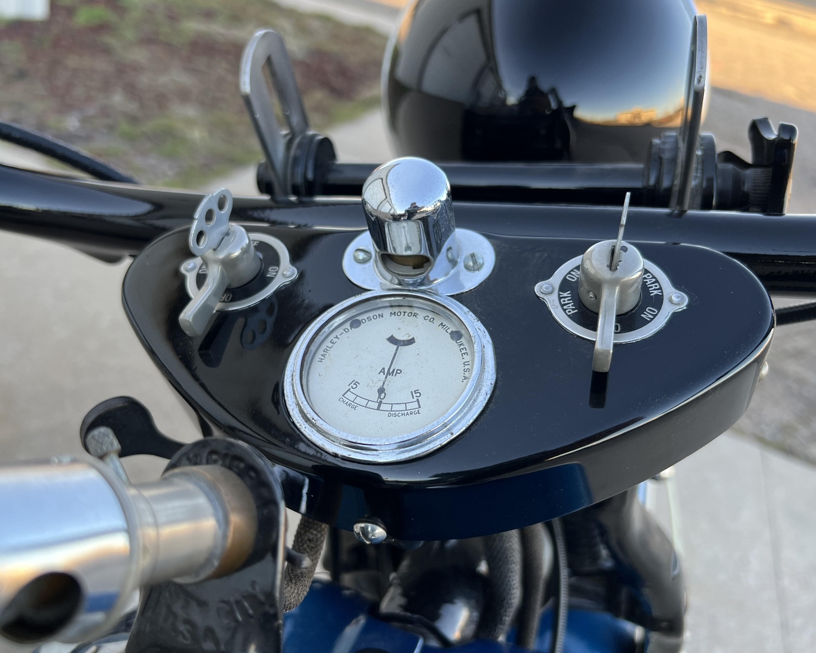 Additional Descriptions of Motorcycle: This is the last year of the VL model and this one is pretty correct. Features are the 1936 Front Fork and Spring Cover, 1936 Rocker Clutch, Ride Control, Horn Mounts, 36 9-bolt cylinders, CycleRay Headlight. The Solo seat has been recovered by Heathers Leathers and has some great rosette ornaments for some style. 120 MPH Corbin Speedometer