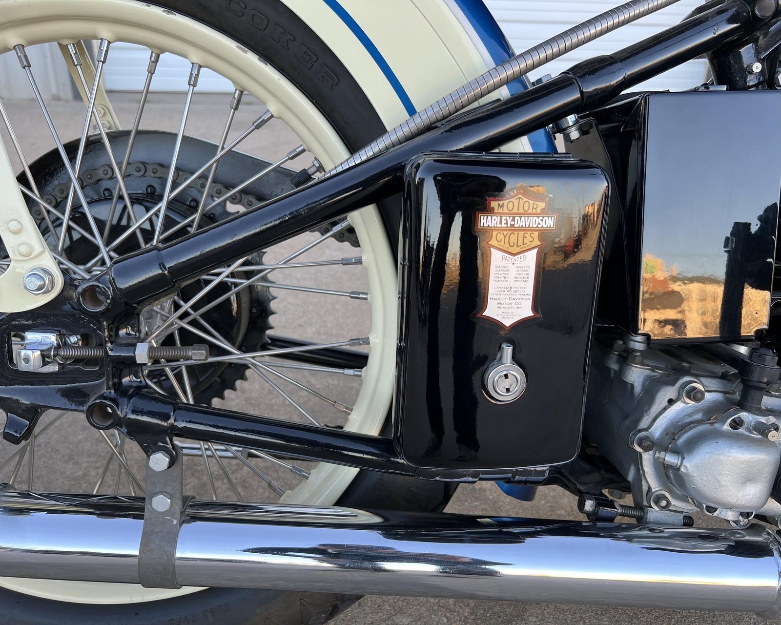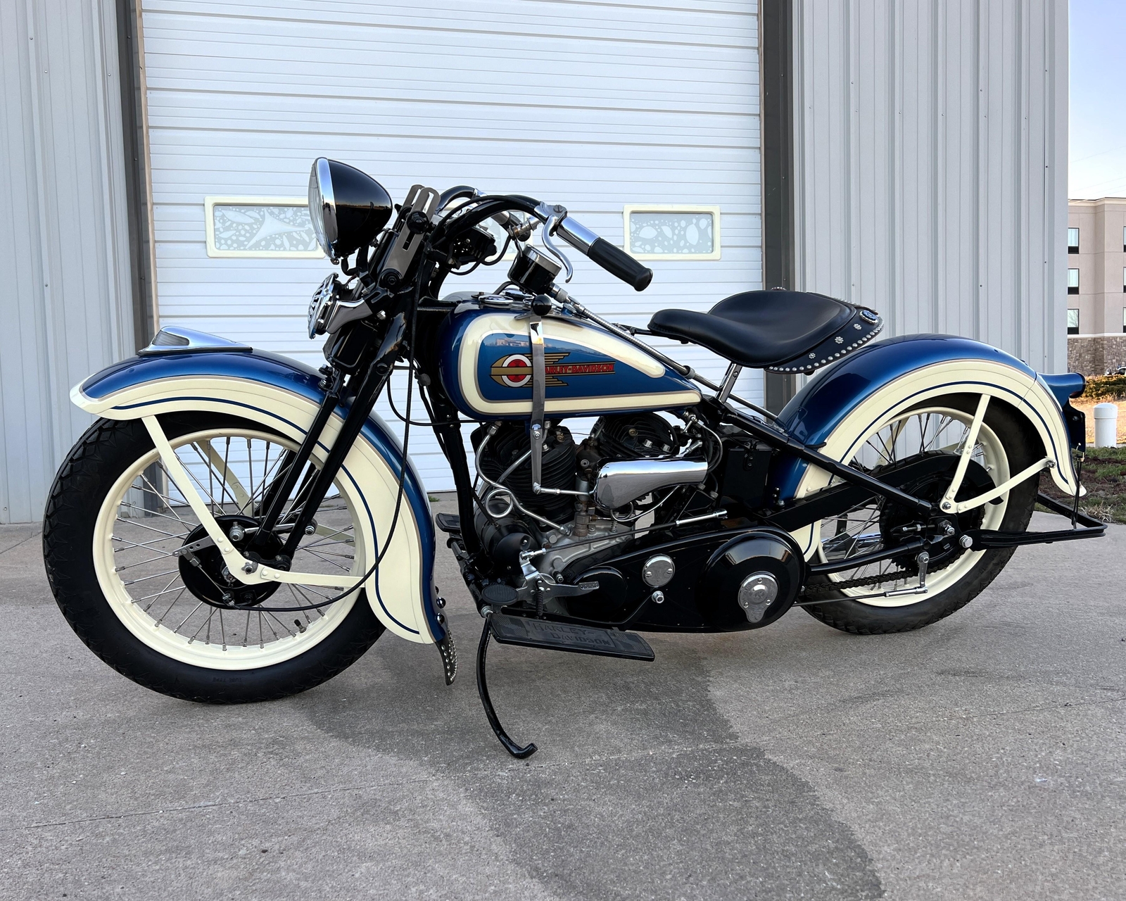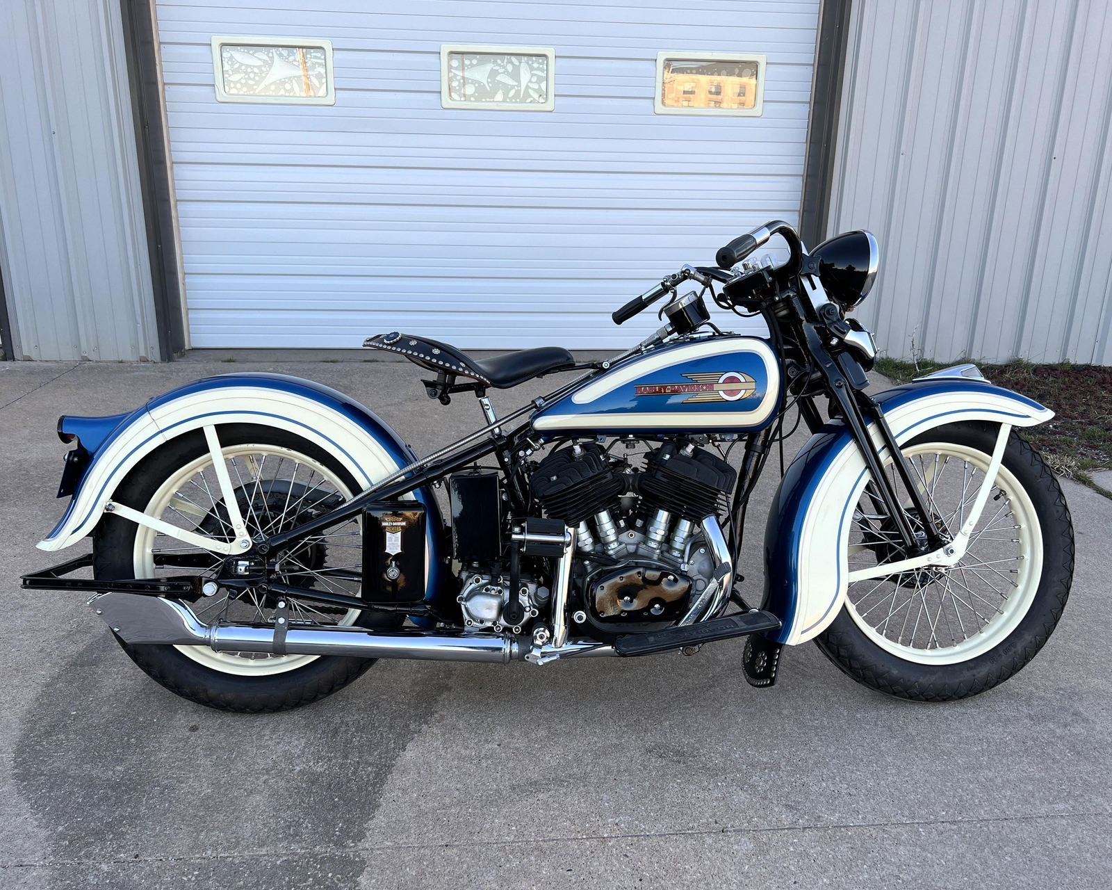 Year: 1936 Make: Harley Davidson Model: VLD Color: Blue and Cream Engine Size: 1200cc - 74"cu Cylinders: 2 Transmission: 3 Speed Mileage: 00005 VIN Number: 36VLD5747 Frame Number: No Frame number in 1936 Motorcycle Currently Registered: Yes Ownership: Clear Title in Owners Name