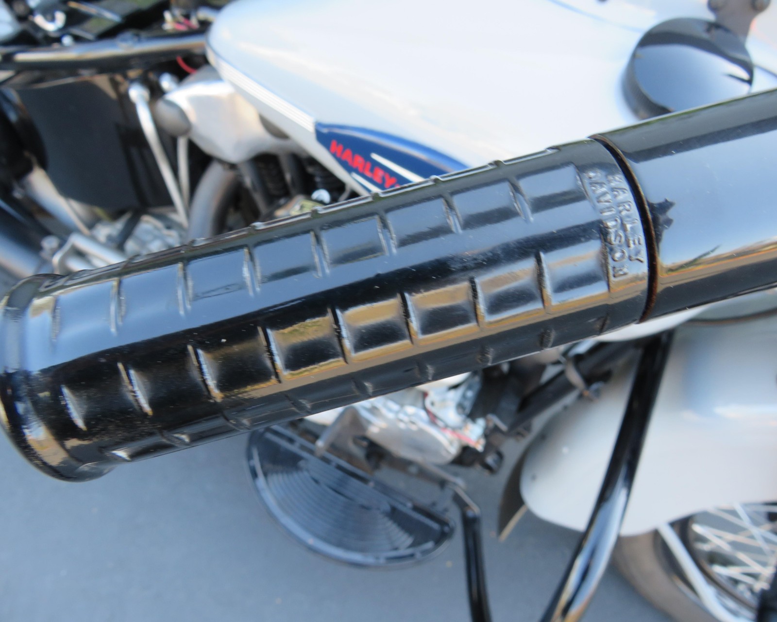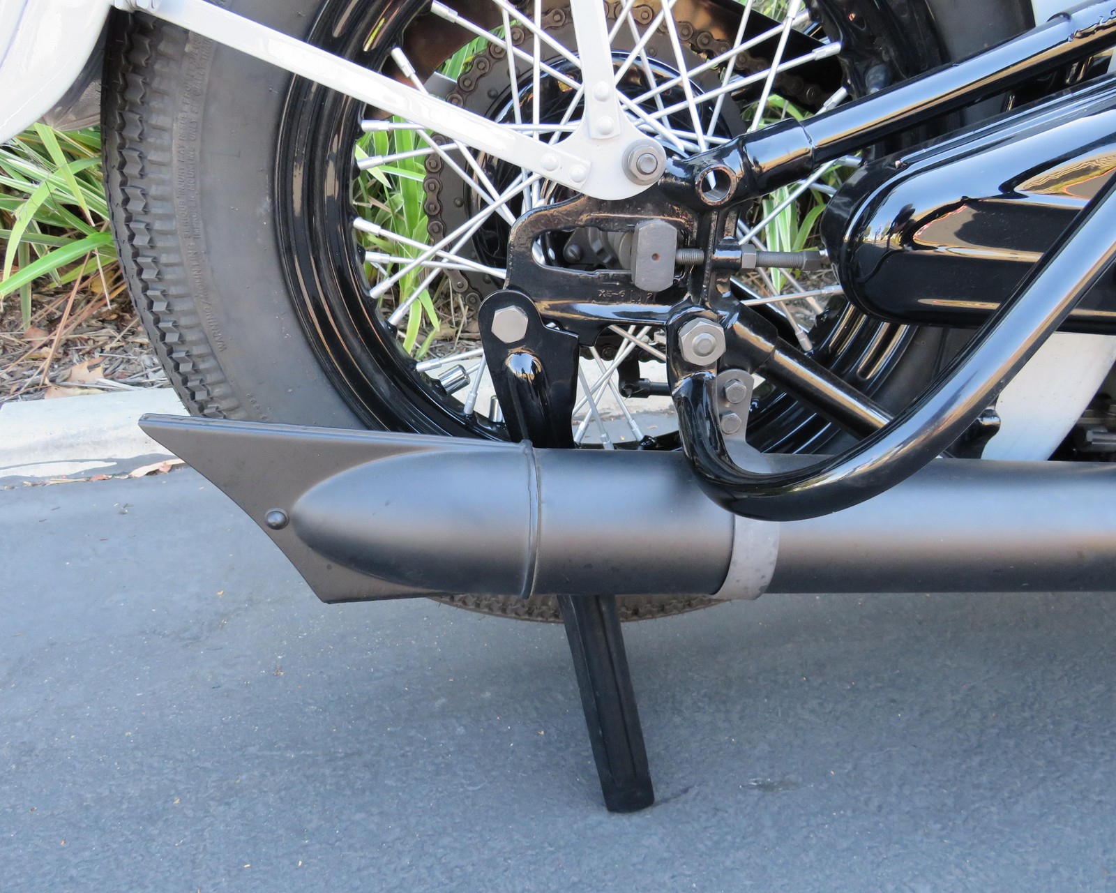 The bike features many one- or two-year parts that are only found on wartime civilian production motorcycles that were offered by the motor company. Civilian production was limited to essential use, making the number of units sold quite low. The frame and fork main leg are correct for 1944 and 1945. The fork spring leg is a number 13, also correct for ’45.