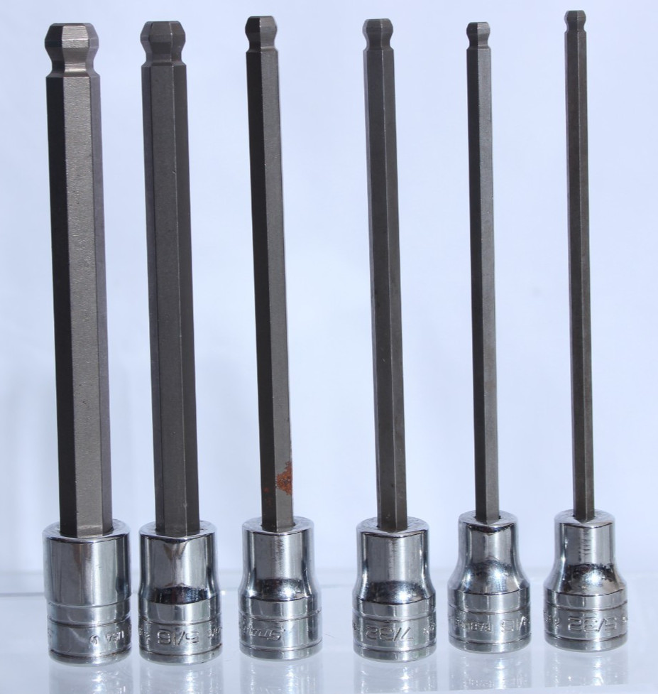 Snap On SAE Long Hex Ball Round Bit Driver Socket Set 3/8" Drive 206EFABL USA