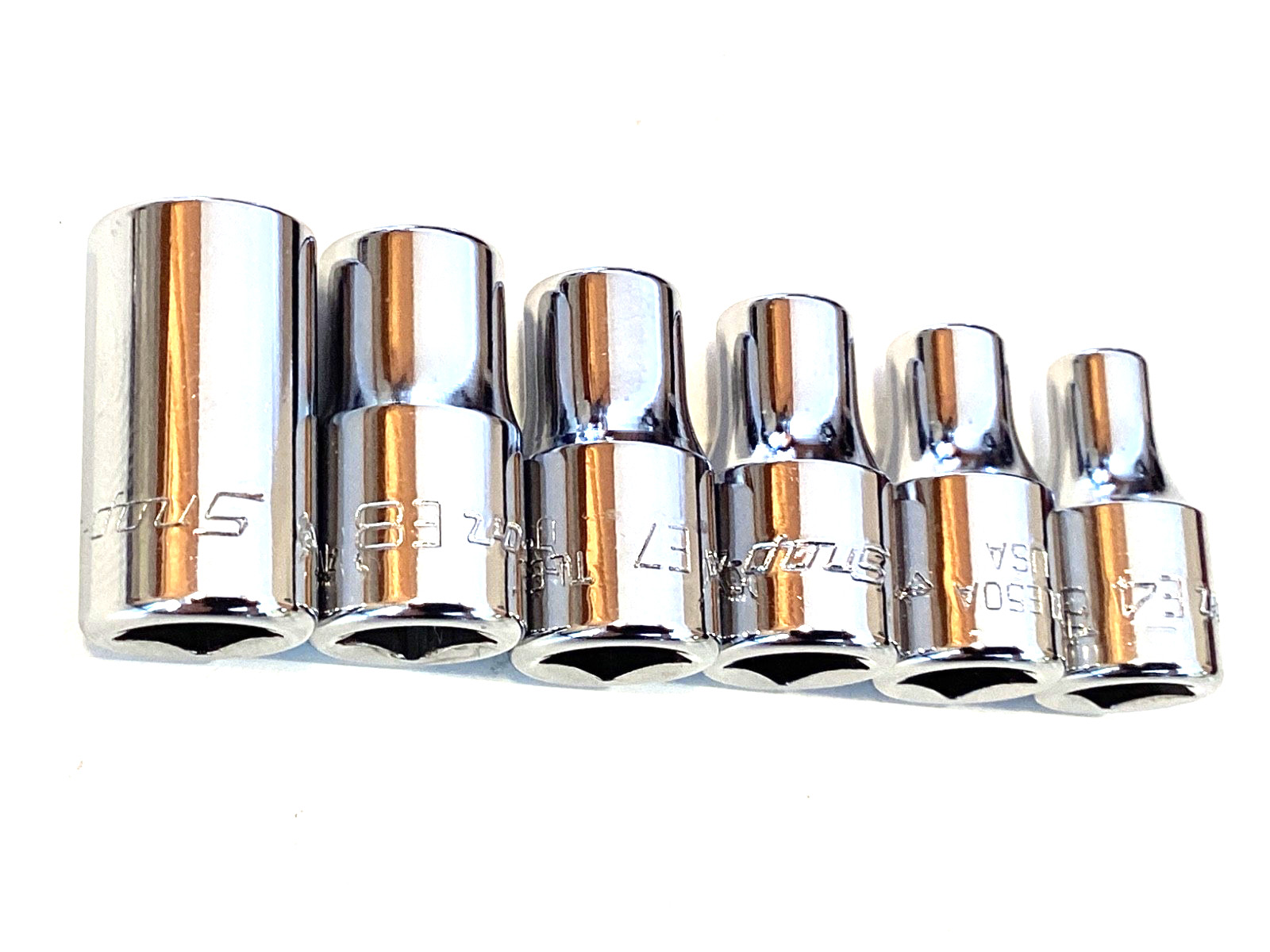 Snap On USA 6 Piece 1/4โ Drive Shallow Torx Chrome Socket Set t E4 To E10 MINT