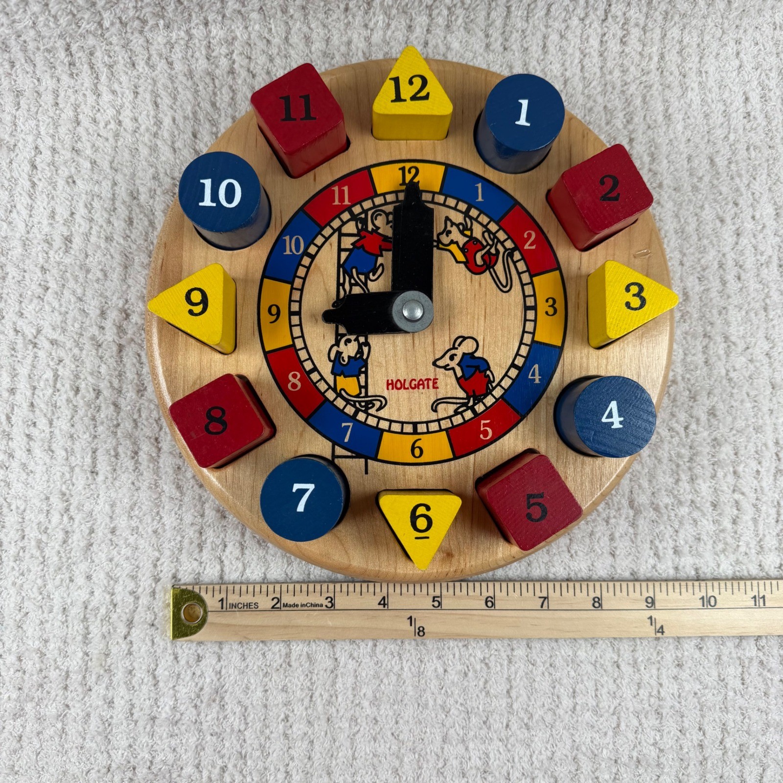 Keywords: Holgate Toys, wooden clock puzzle, Hickory Dickory Dock toy, shape sorter clock, educational wooden toy, Montessori toy, made in USA toy, vintage style toy, preschool learning toy, toddler shape sorter, nursery rhyme toy, heirloom wooden toy