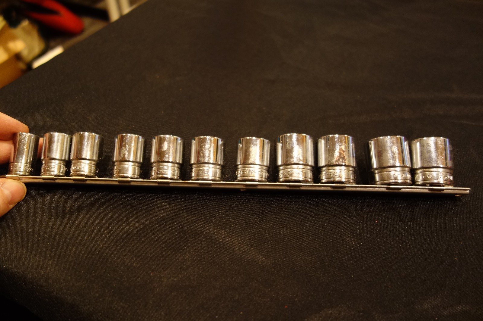 Hi, Up for sale is a used 11 piece set of Snap On Weatherhead sockets. This set includes fd120, fd140, fd150, fd160, fd170, fd180, fd190, fd210, fd220, fd240, and fd250. This set shows normal sigs of use with some minor flaking, dirt, grime, rust, etc. Please see photos for actual condition. What you see in the photos are the exact items that you will receive. All of my auctions are AS-IS but take a look at my feedback and you will see that I am a good Ebay seller. Thanks for looking.