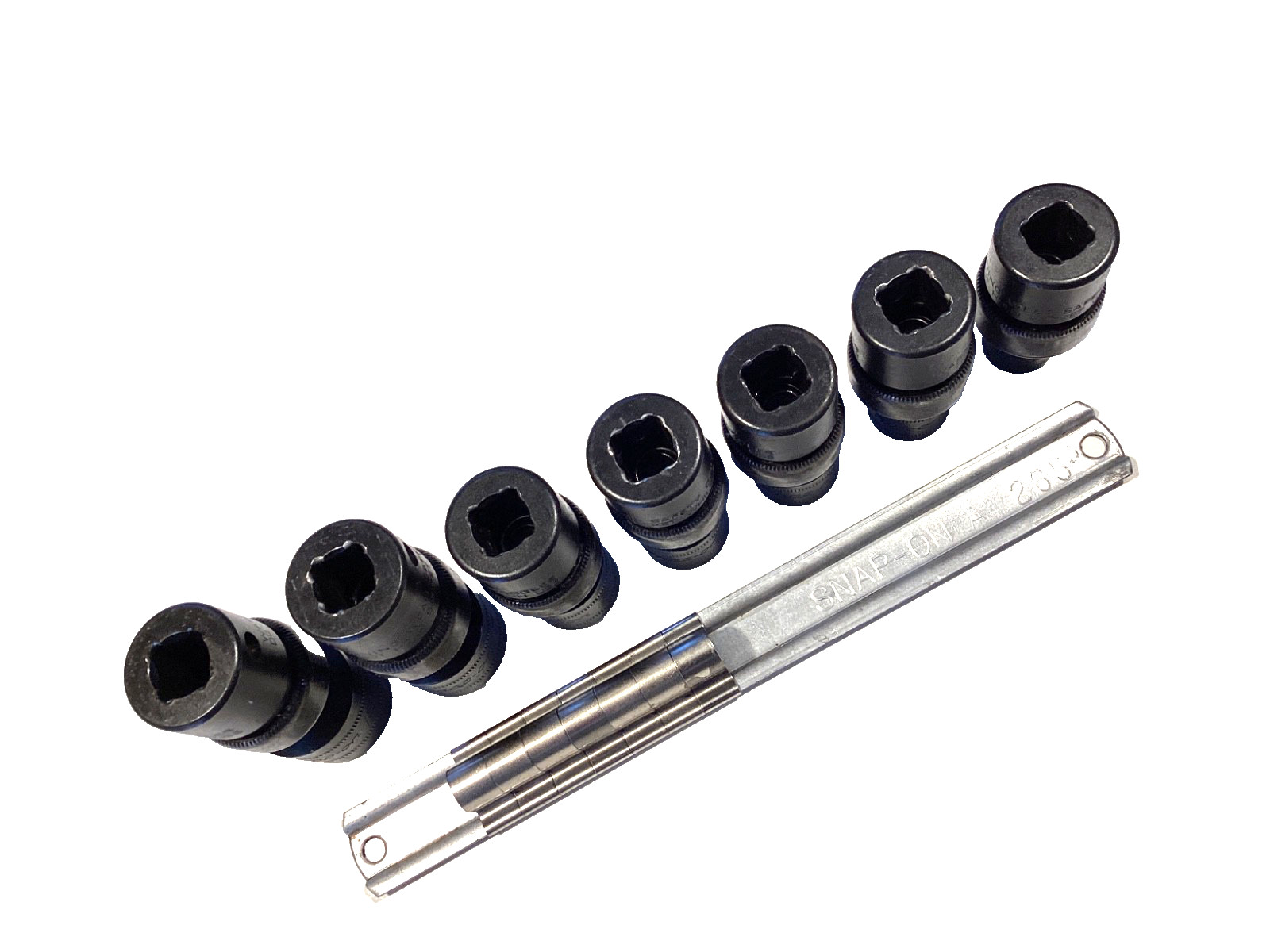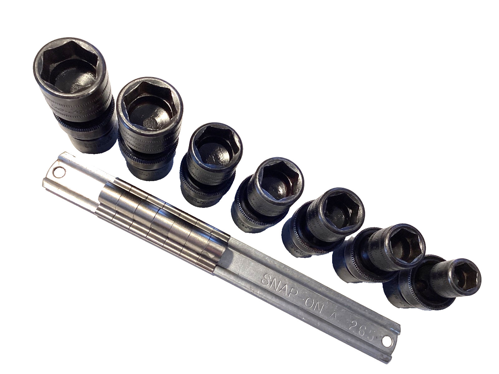 This set contains 7 impact swivel sockets…10, 12, 13, 14, 15, 17 & 18MM with storage rail!