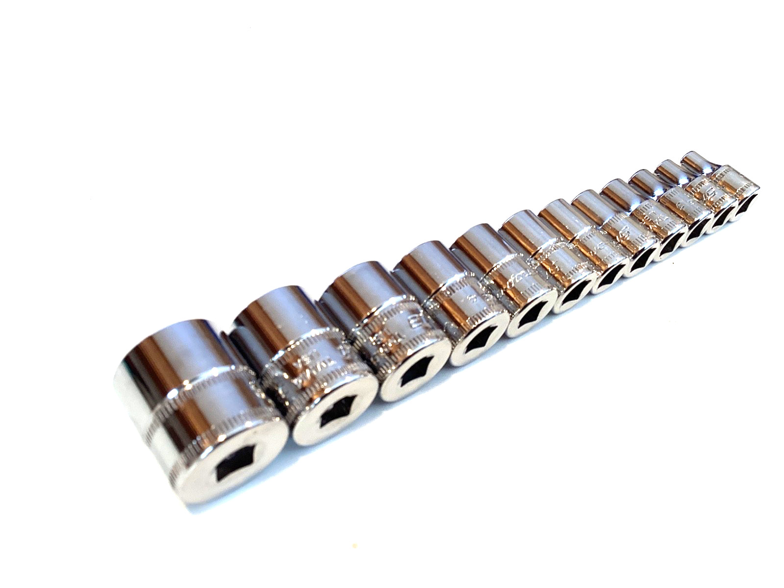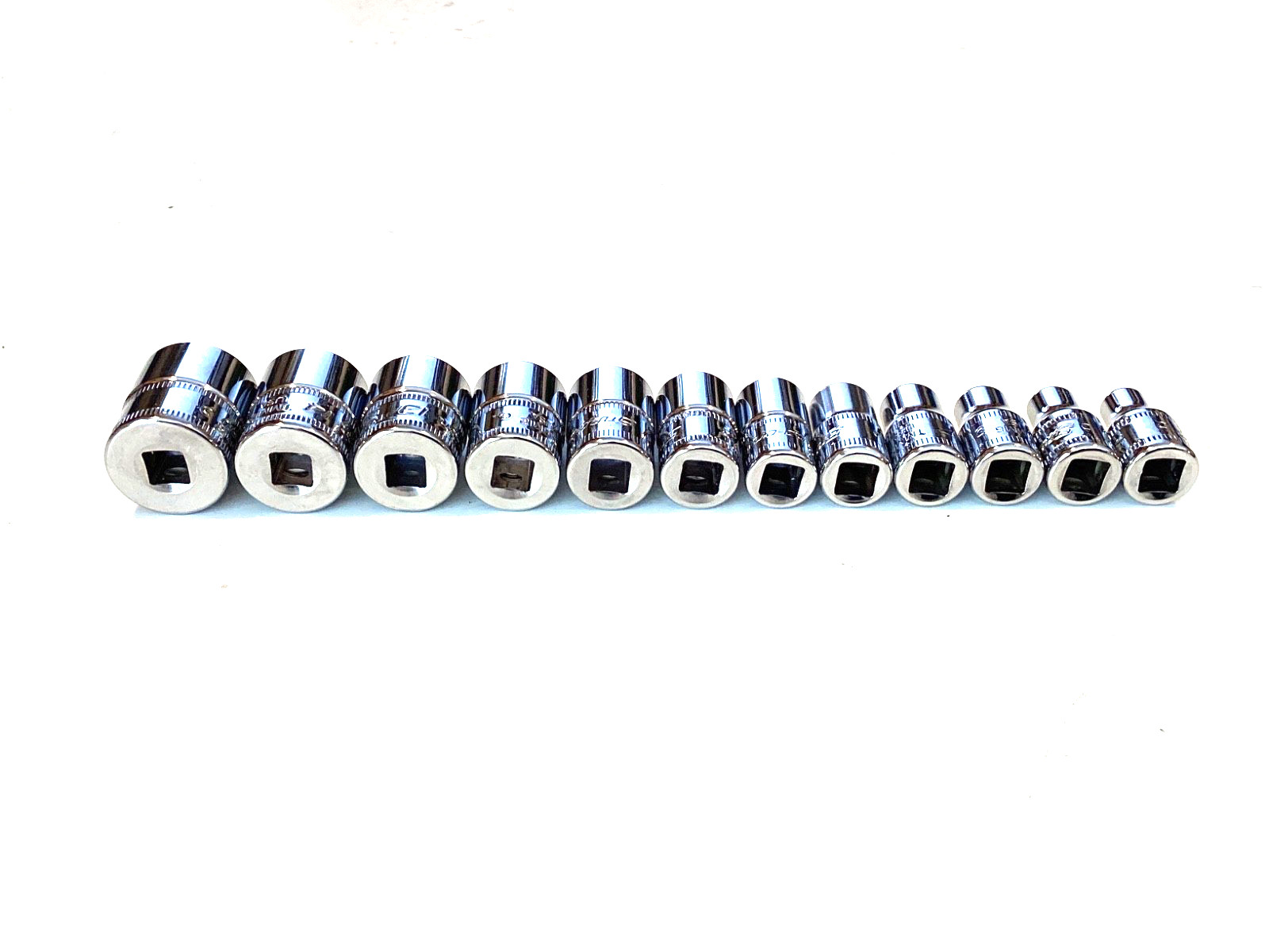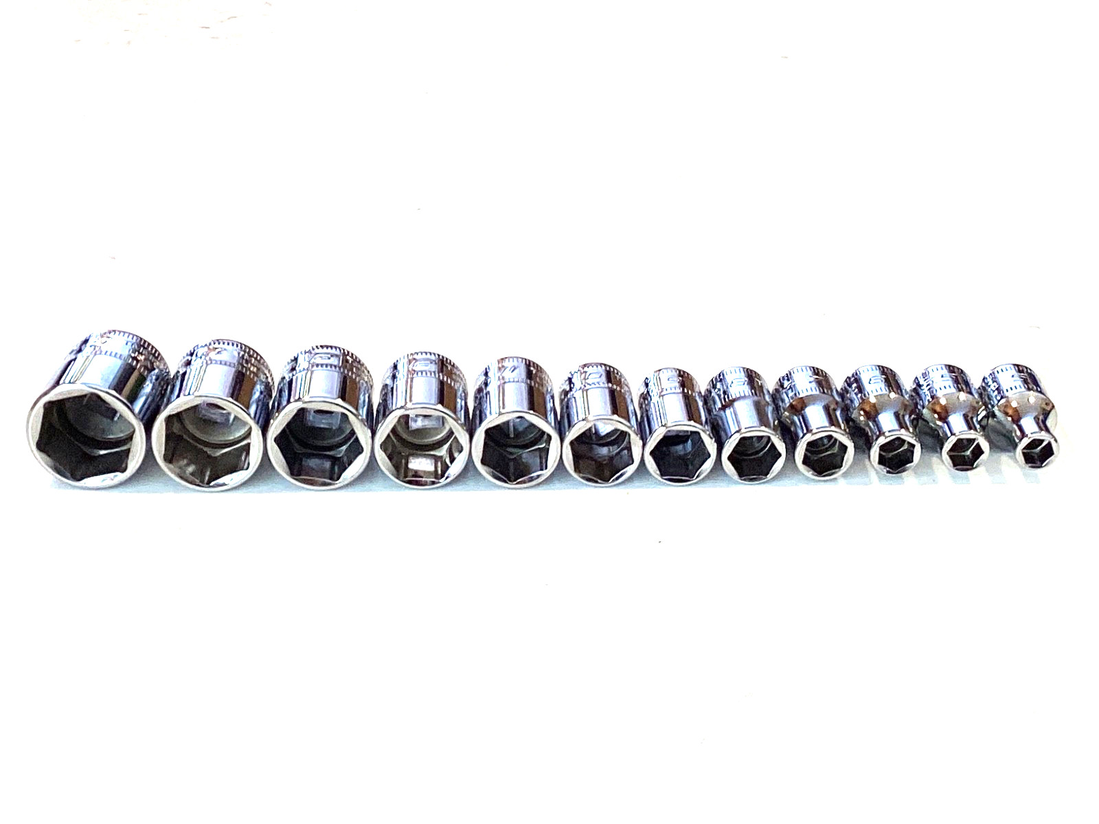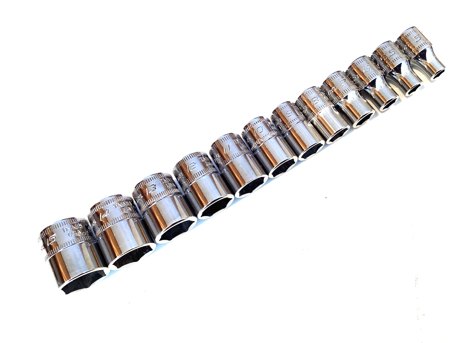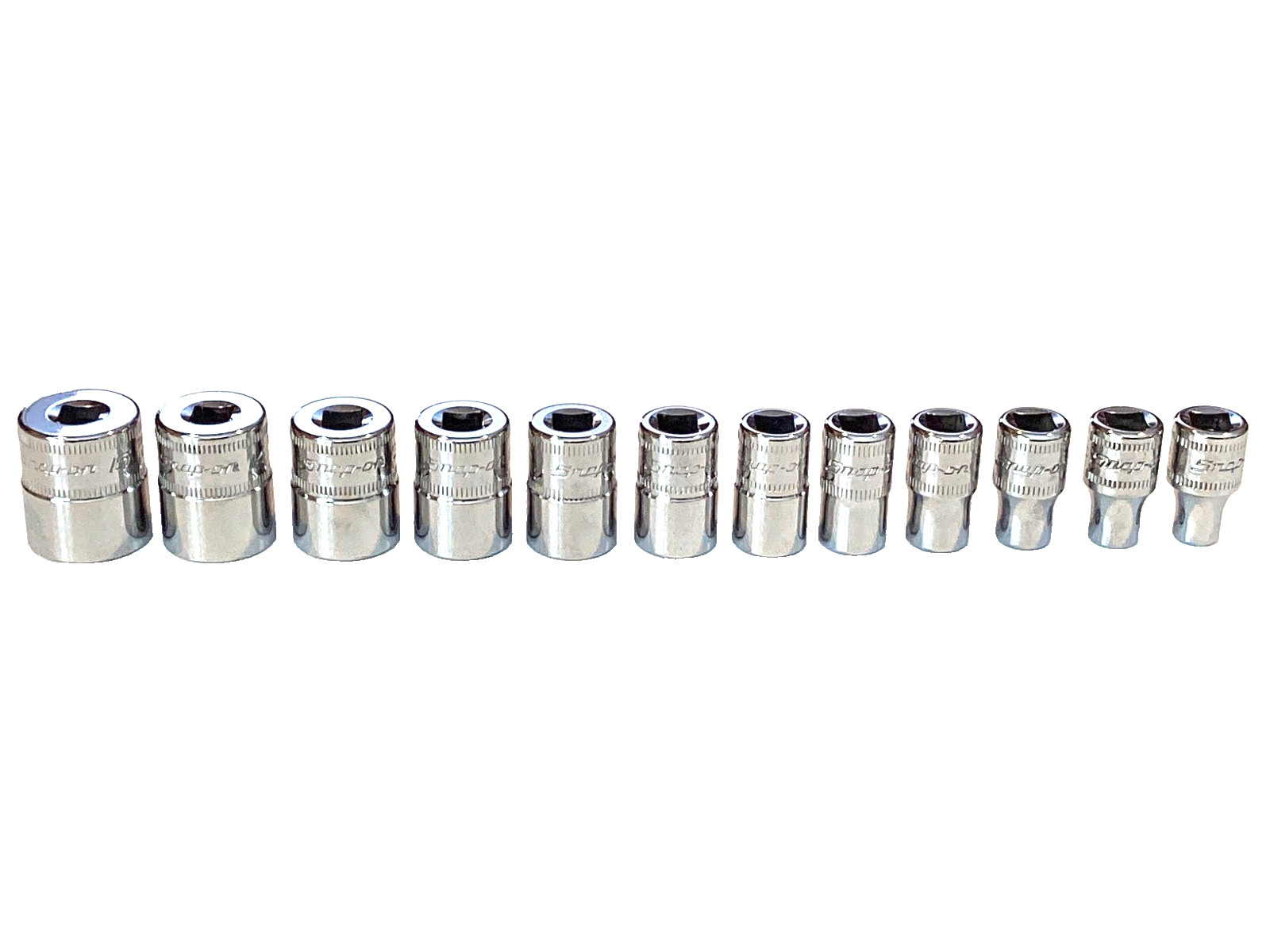 Snap On USA 112TMMY 12 Piece 1/4โ Drive 6 Point Metric Shallow Socket Set MINT