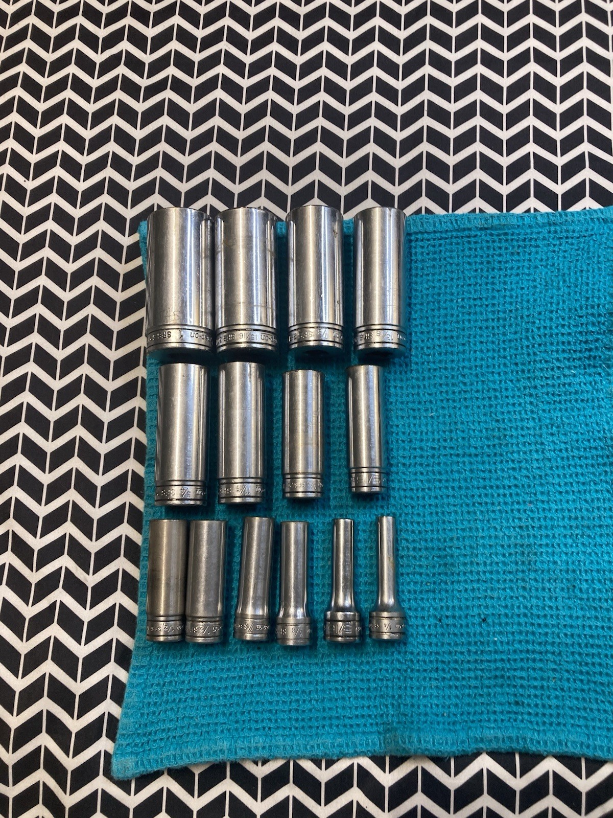 snap-on 3/8 drive sae deep socket set 14 Piece 1 To 1/4