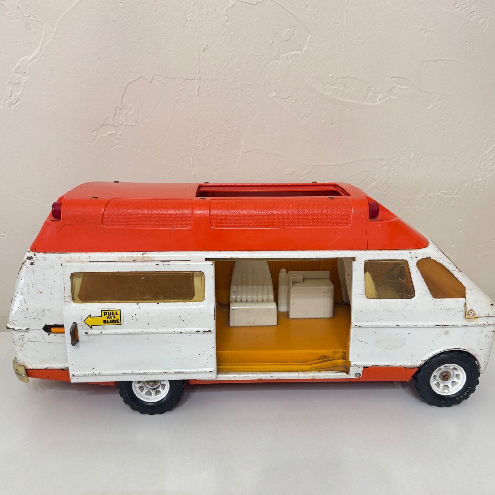 Keywords: Tonka Toys, Pressed Steel, Van, Camper, Vintage Toy, Collectible, Metal Toy, Retro, Play Vehicle, Adventure Toy, Outdoor Play, Display Item