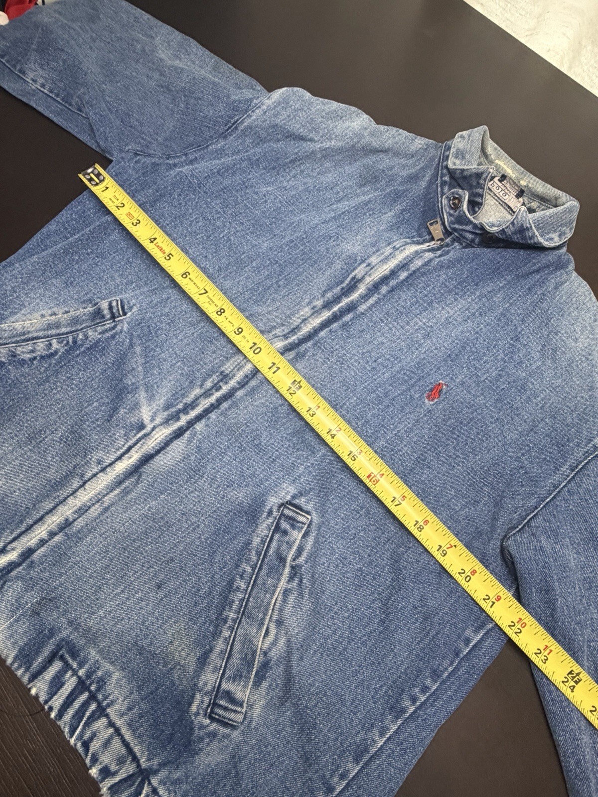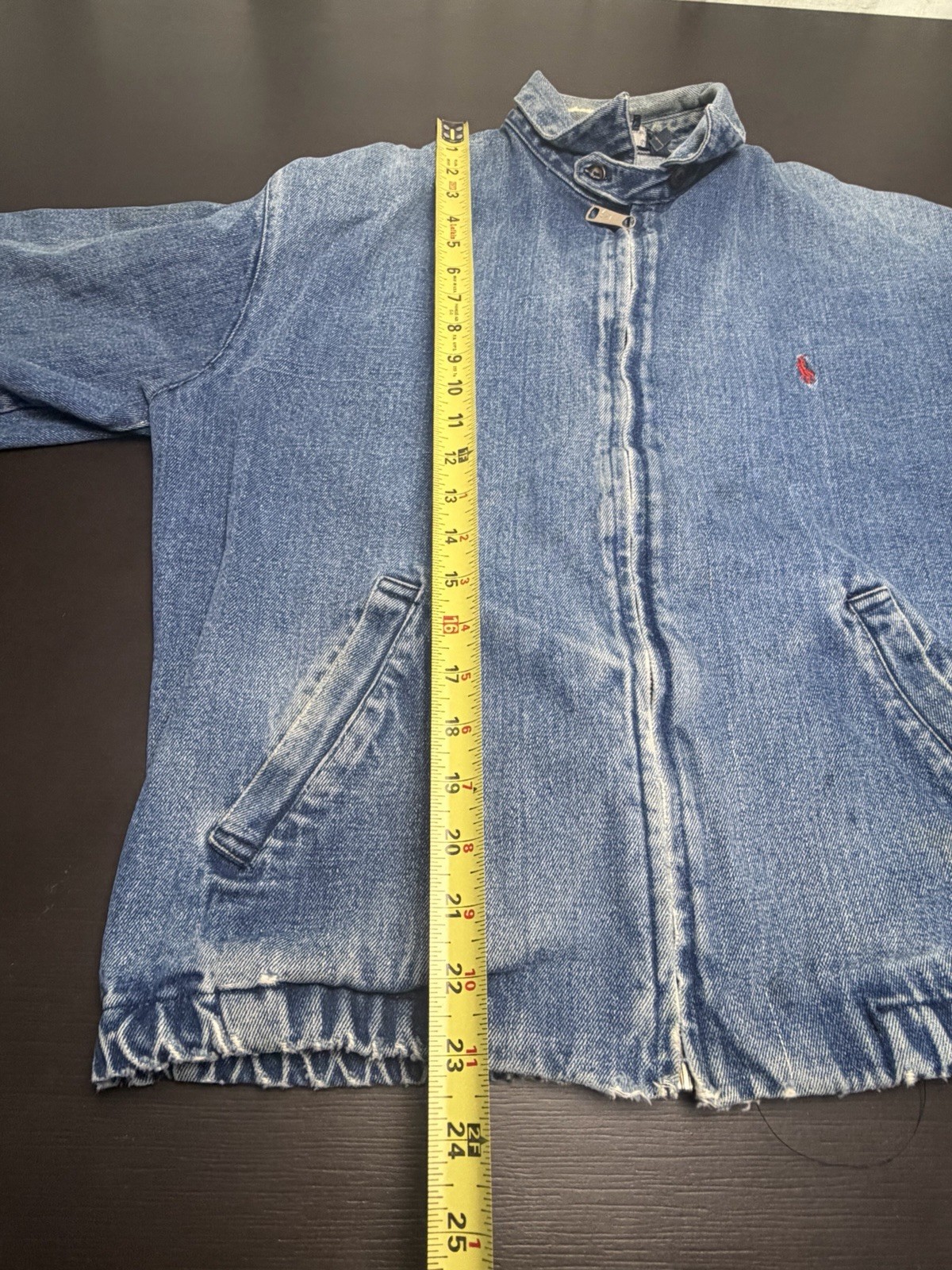 VTG Polo Ralph Lauren Denim Harrington Jacket Made in USA Red Pony Distressed M