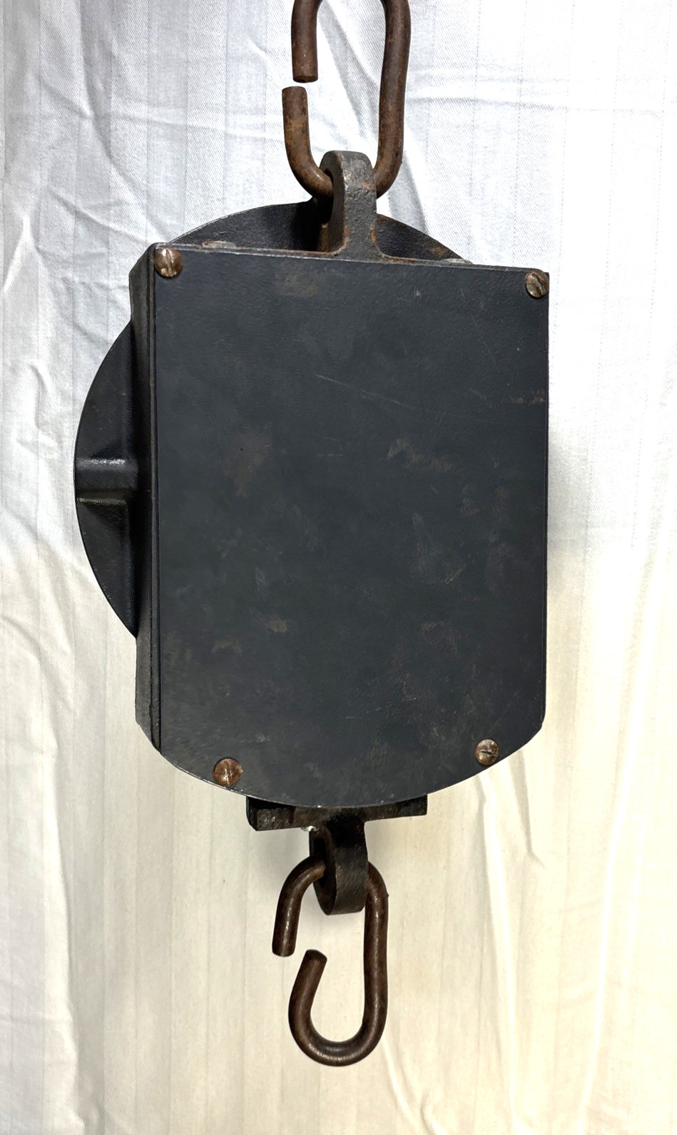 The VTG Detecto Matic NO.11S 400 lb Hanging Scale is a high-quality and durable scale made in the USA by Cardinal Scale MFG. This vintage scale with a capacity of 400 lbs is perfect for use in mercantile, trades, and factory settings. Its sturdy construction and accurate measurements make it a reliable tool for various industrial applications. This product showcases the craftsmanship and quality of American manufacturing.