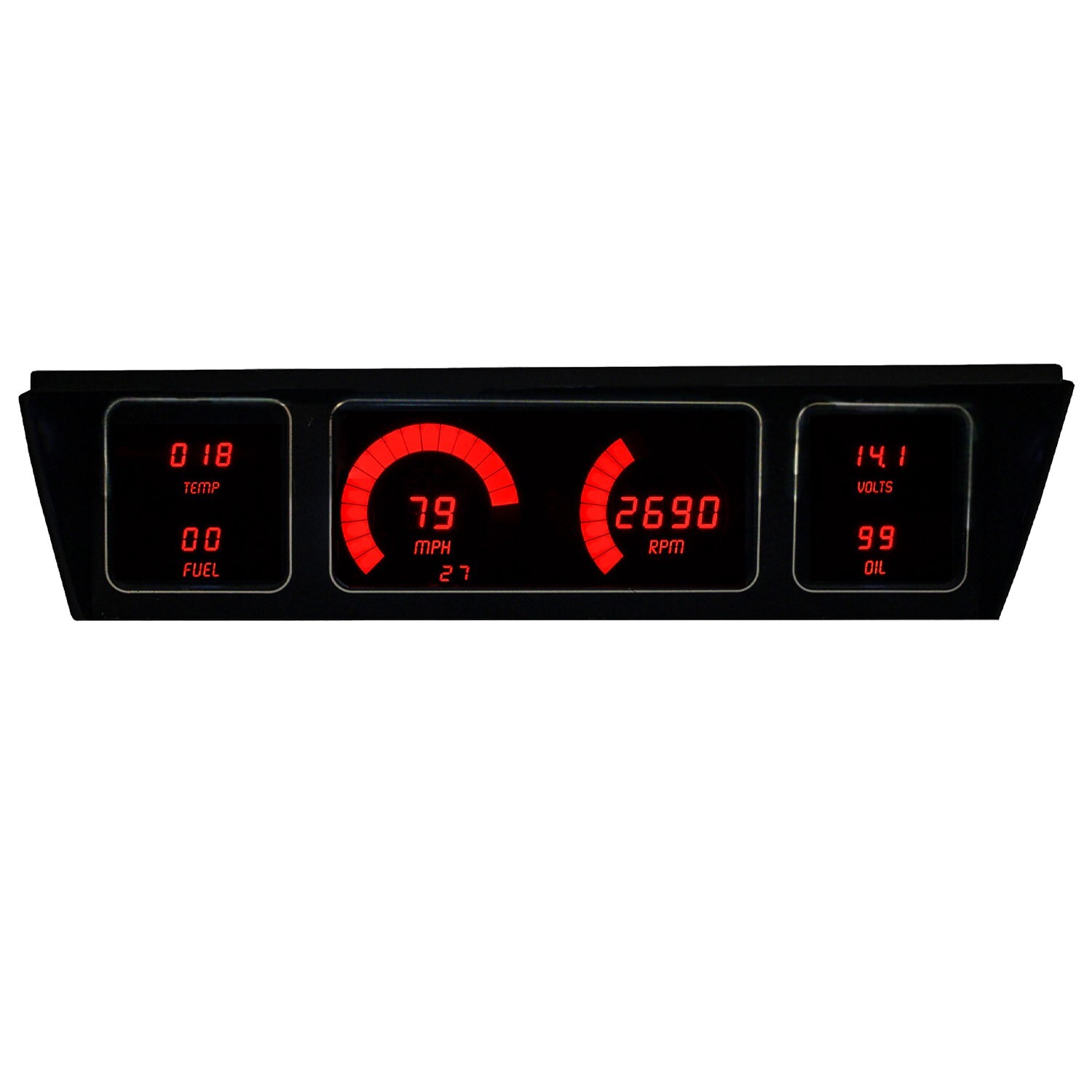 This Digital Dash comes complete with direct fit printed circuit board, custom fit "smoked" Plexiglas face plate, universal temperature sending unit, oil pressure sending unit, and speedometer sending unit (sender/sensor) for cars without electronic transmission or cruise control, and instructions for installation. The Digital Dash works with your factory fuel level sending unit and cruise control sender or electronic transmission output if so equipped. Everything directly fits into your existing housing, but you will need to run some new wires to the speed sensor.