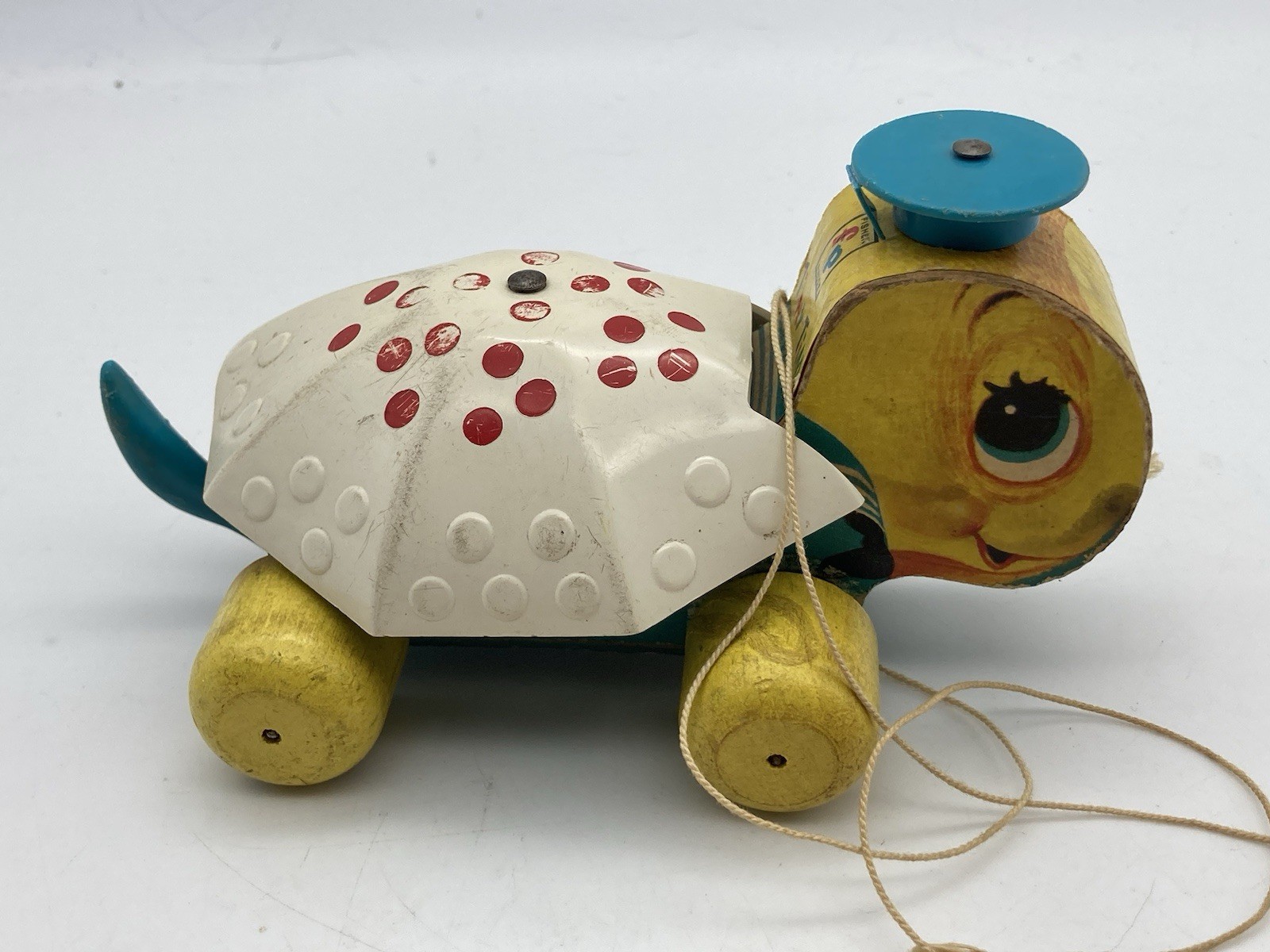 Vintage Fisher Price 1957 Tiny Tim Turtle Wooden Pull Toy 496 Made in USA