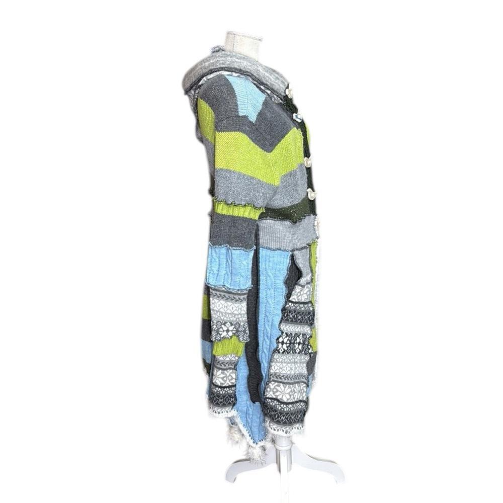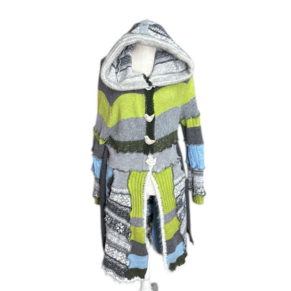 Upcycled Fairy Elf Gypsy Hood Sweater Whimsical Gray Green Coat Jacket Womens M