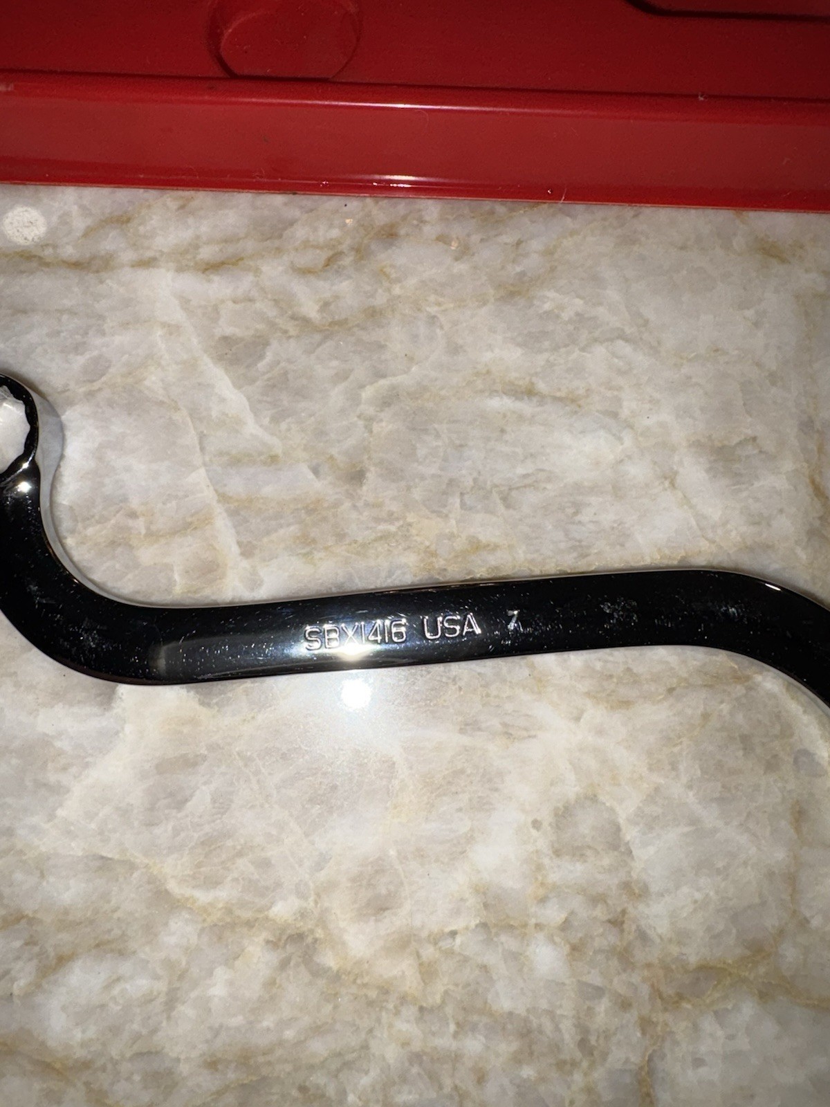 Lightly used; clean; no wear; no initials, etc. 5 S shaped 12point box end wrenches 5/16-3/8 SBX1012 7/16-1/2 SBX1416 9/16-5/8 SBX1820 11/16-3/4 SBX2224 13/16-7/8 SBX2628 Storage tray included These wrenches are a must have when working on starters, power, steering pumps, steering racks, air-conditioning, compressors, alternators, transmissions, etc.