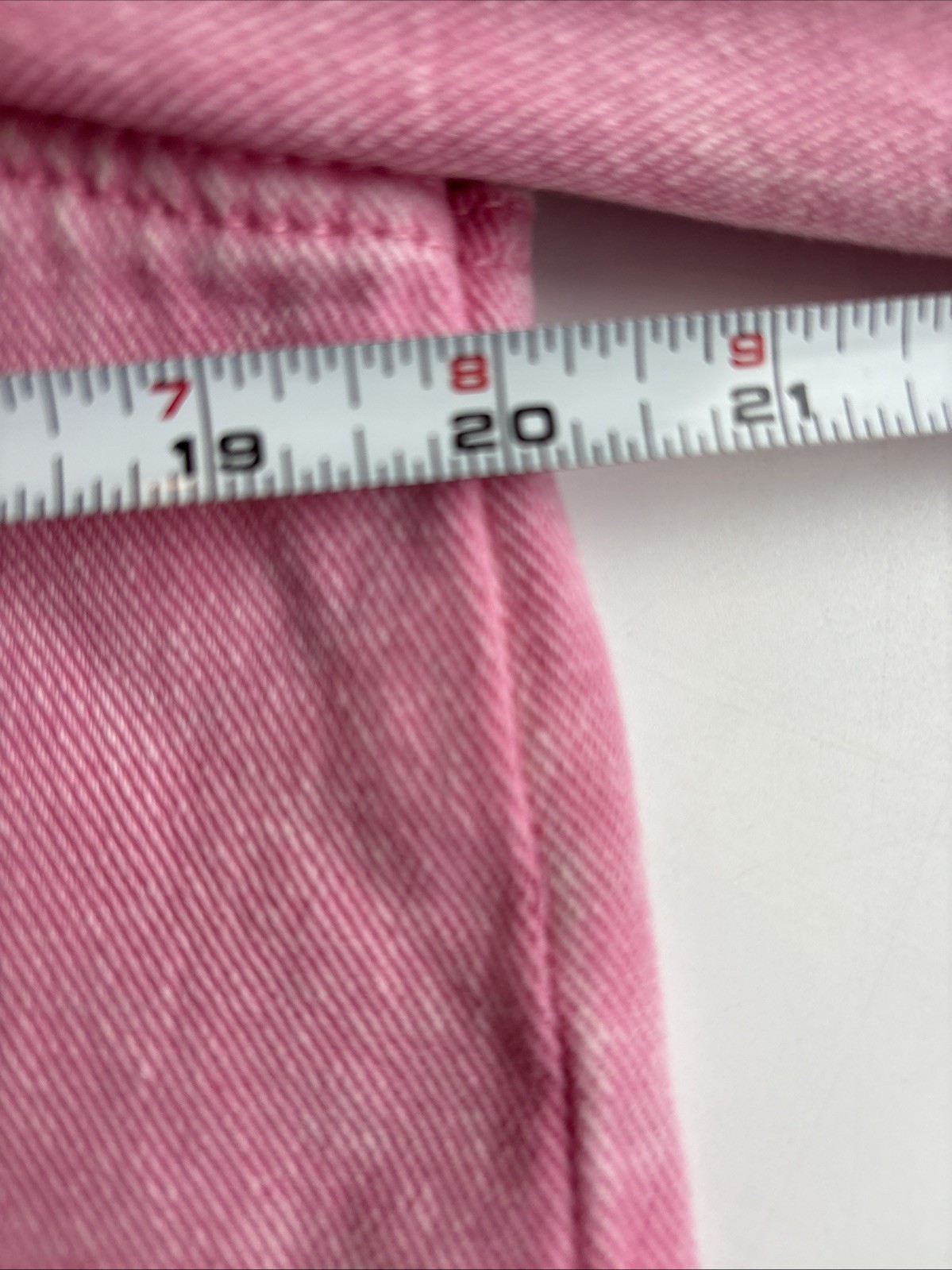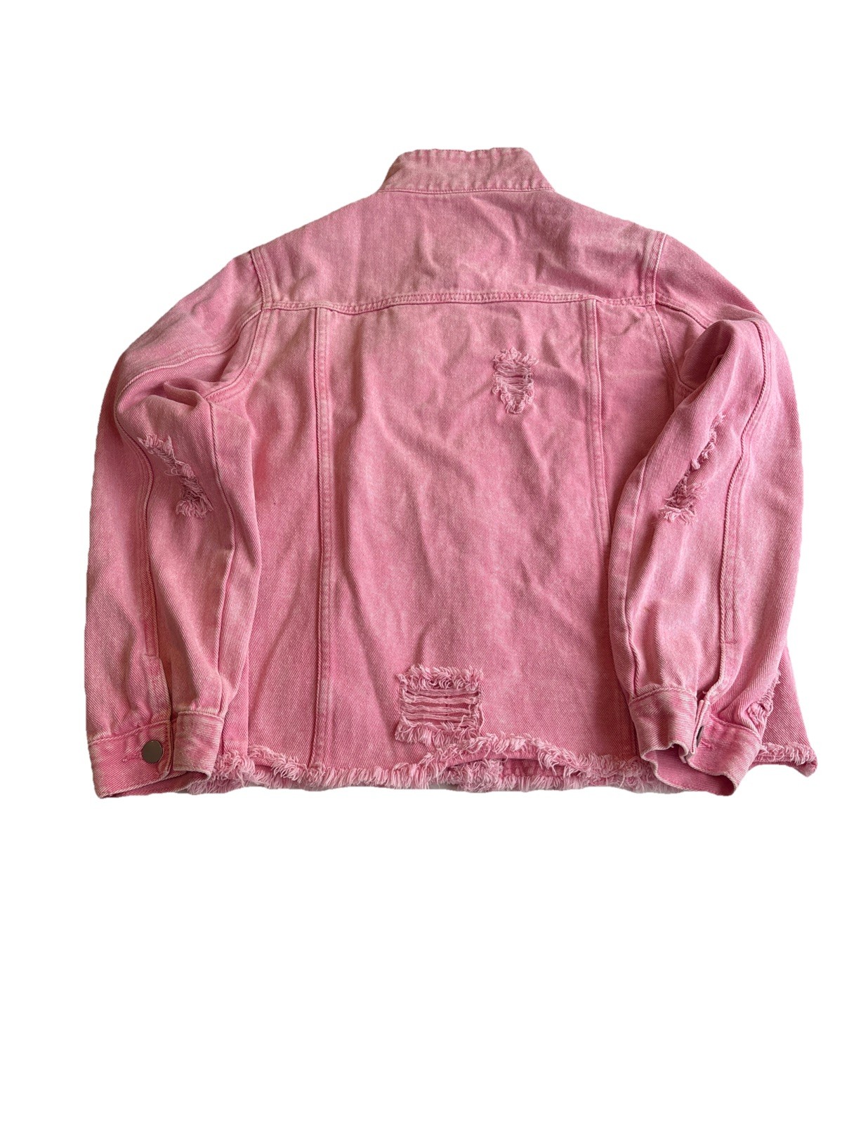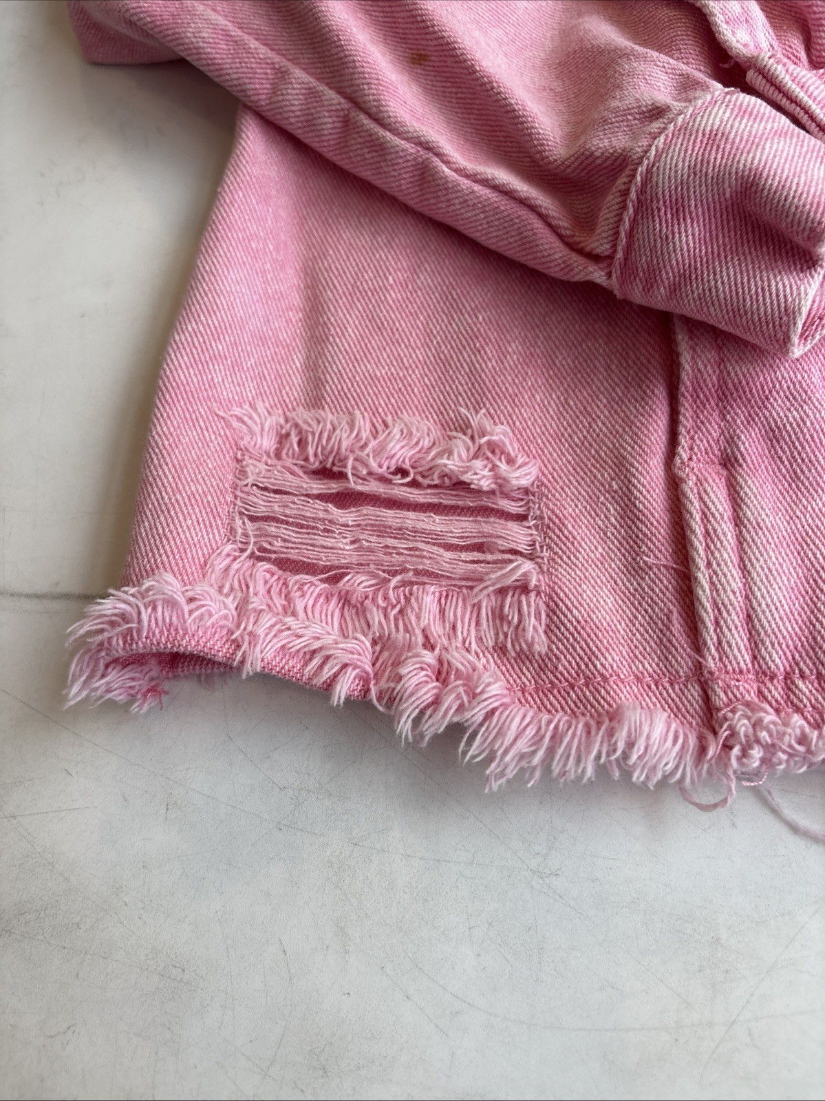 Upcycled Distressed Pink Jean Jacket - Mushrooms Women’s LARGE