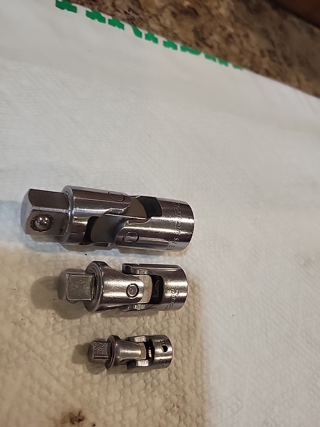 Snap On Tools 3Pc 1/4" 3/8"& 1/2" Drive Universal Swivel Socket Adapter Set EUC!
