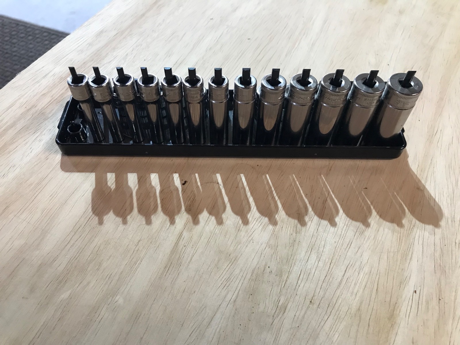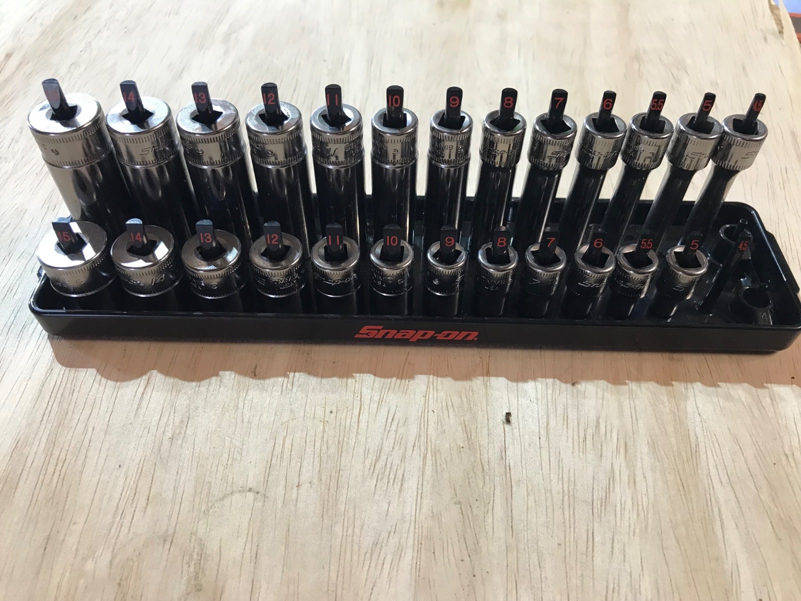 Up for sale is a Snap On 25pc 1/4" drive deep & shallow socket set look unused all in very good condition deep (13pcs) 4.5mm to 15mm + 5.5mm. Shallow (12pcs) 5mm to 15mm + 5.5mm with snap on holder Please read Snap-On, Mac & Matco tools as they are the manufactures of the tools I make no claims as to warranty and do not represent the manufactures in any way. The Snap-On, Mac & Matco names and model numbers are used only to verify the maker and to identify the tool itself as being authentic. Please look at all photos closely as pictures are part of the description. If you have any questions on the item listed or shipping, please contact me first via email. Be sure to add me to your favorites list!!! ~Check out my Feedback, Sale Items & other Auctions~ ~Thank you for viewing my items~