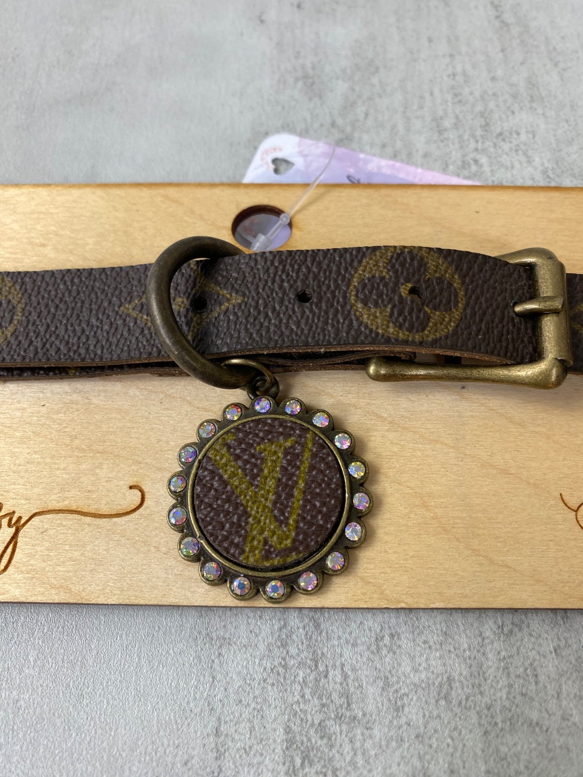 UPCYCLED Louis Vuitton Large Dog Collar with medallion
