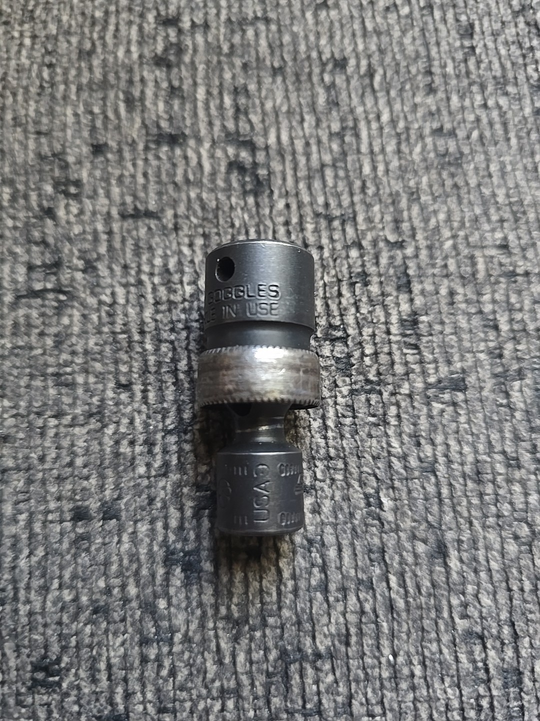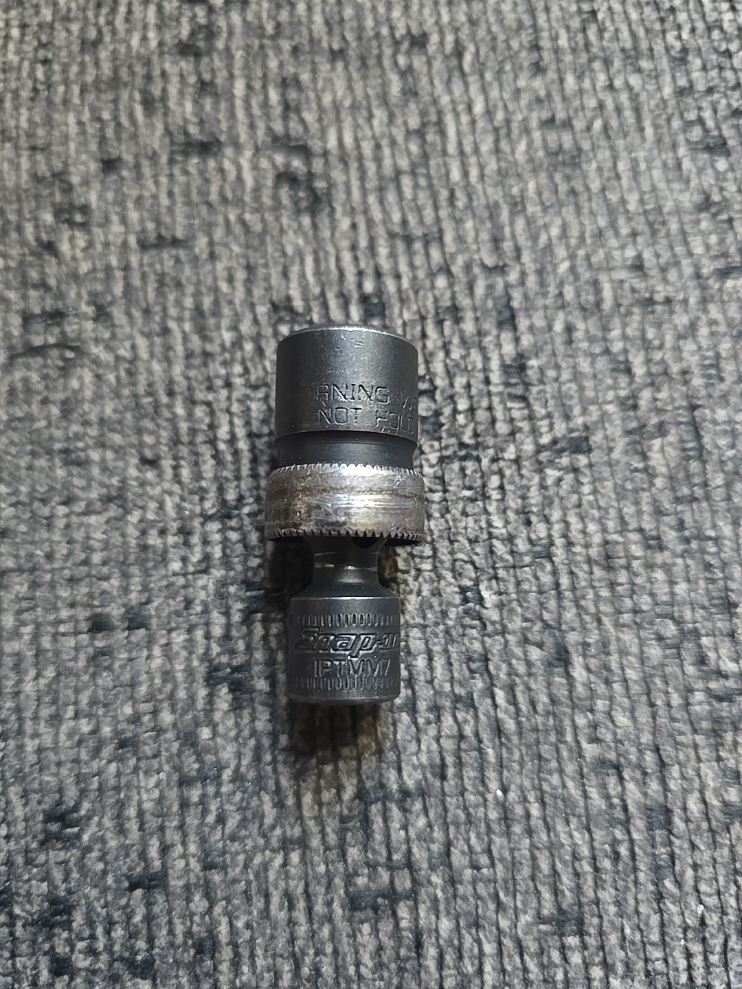 Used Snap-on Tools USA 1/4" Drive 7mm Metric 6PT Impact Swivel Socket IPTMM7 is a high-quality and durable hand tool designed for automotive use. Tool has some wear on body (see pictures). Made in the United States, this single item socket features a 6-point design and a black oxide surface finish for added strength and protection. The swivel feature allows for added flexibility and ease of use, making it a valuable addition to any mechanic's toolbox. With its reliable brand reputation and precise measurement, this Snap-on socket is a must-have for any professional automotive technician. Free shipping.