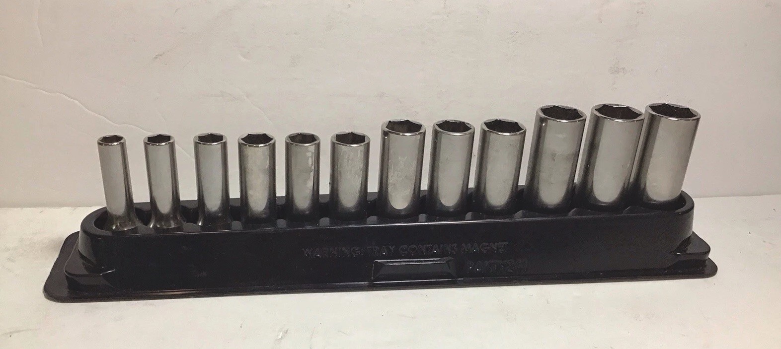 Very nice set of SFSM metric deep sockets 19- 8 mm 3/8” dr. In original Magnetic black tray no.PAKTY 241 used very little. See all photos for more details.