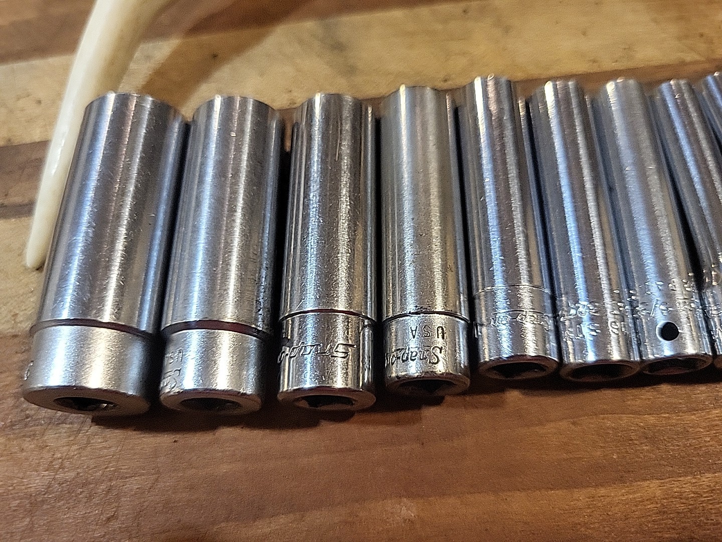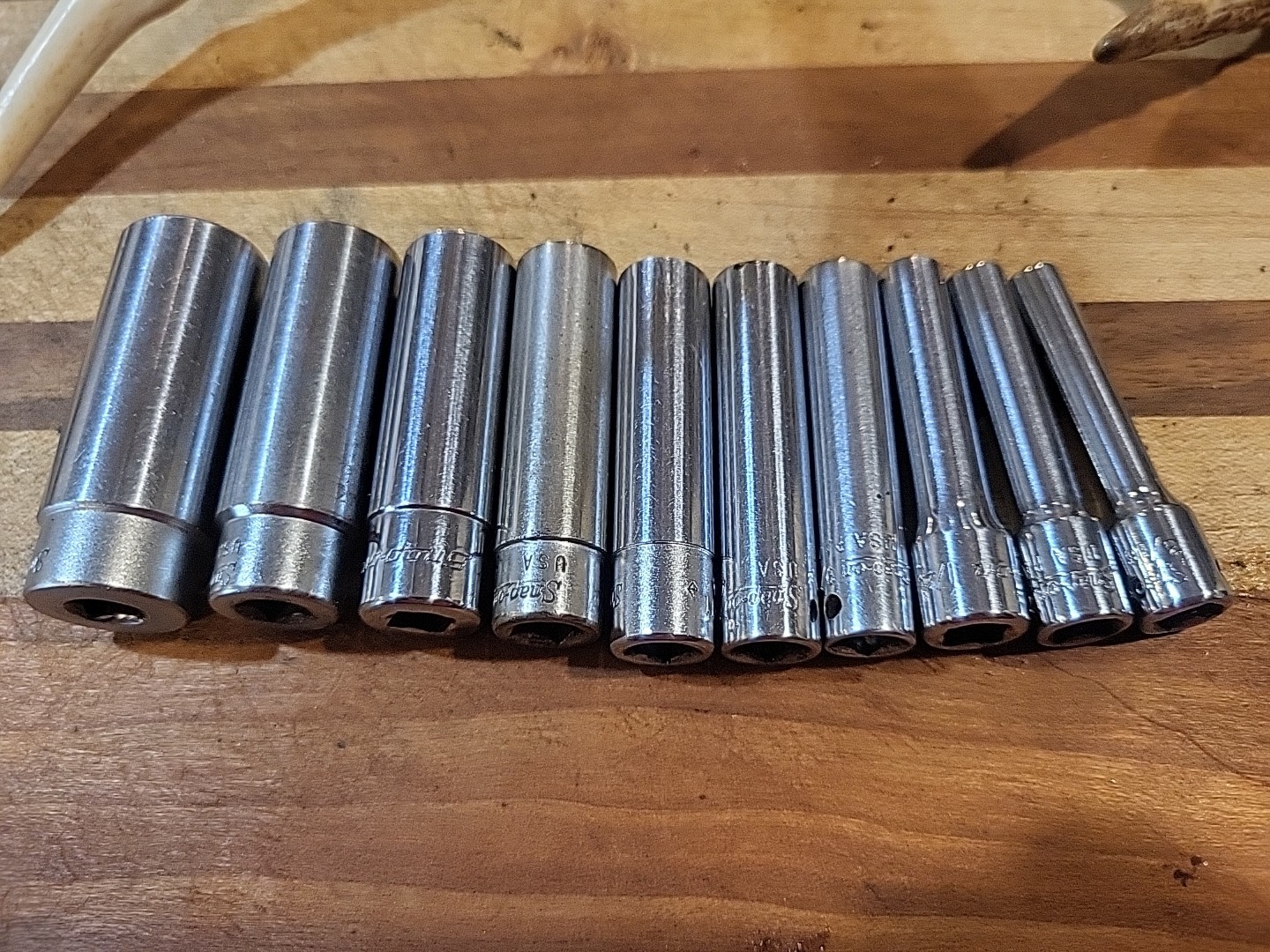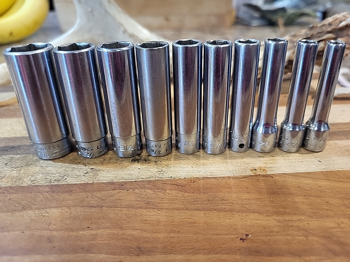 Snap On Tools 1/4" Drive 10 Piece SAE Deep 6 Point Socket Set 110STMY 3/16"-9/16" STM6-STM18. In Good Pre-owned Condition!! Please refer to pictures.