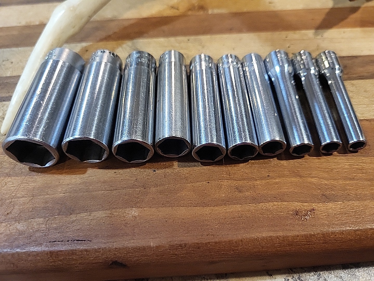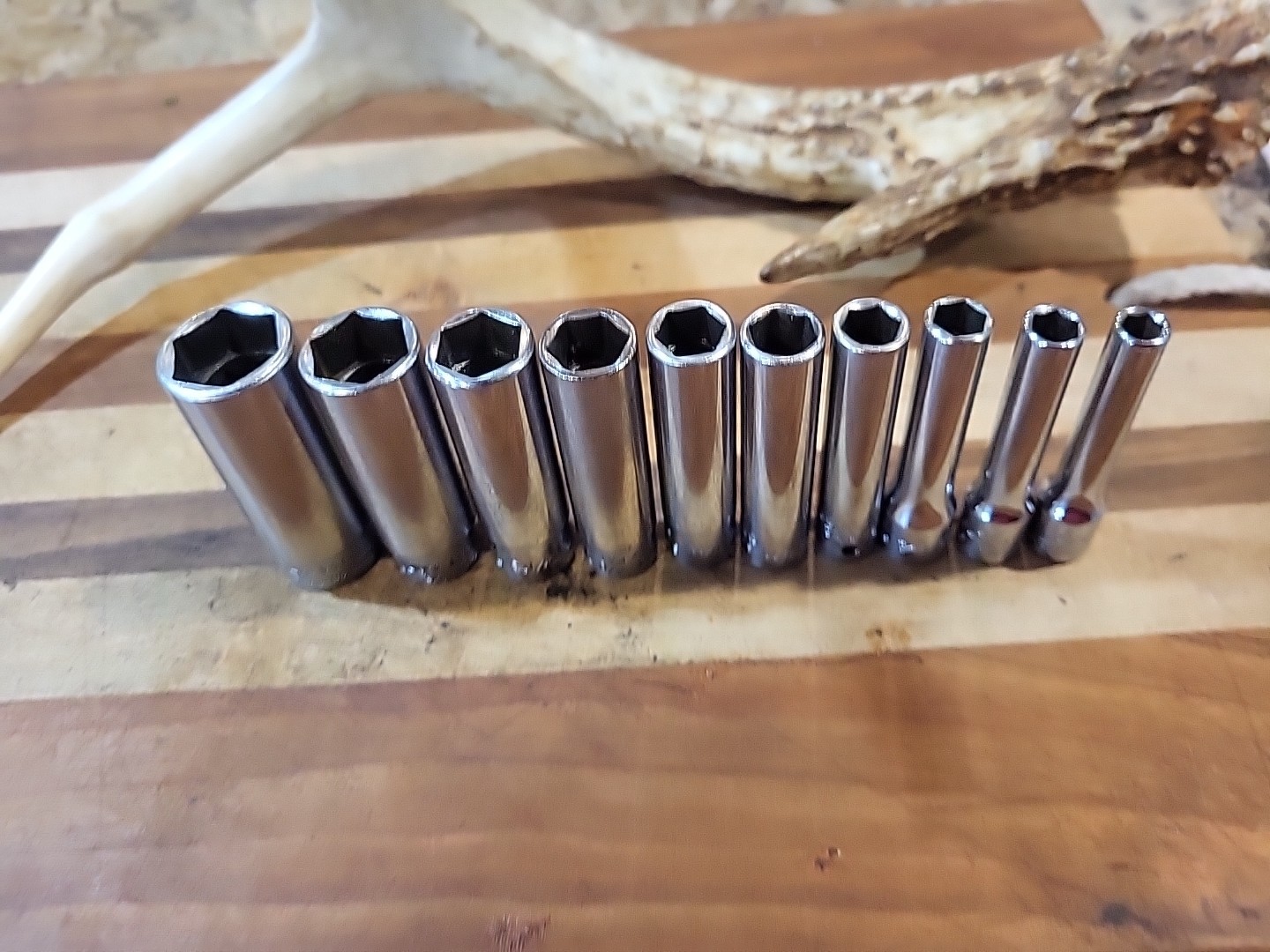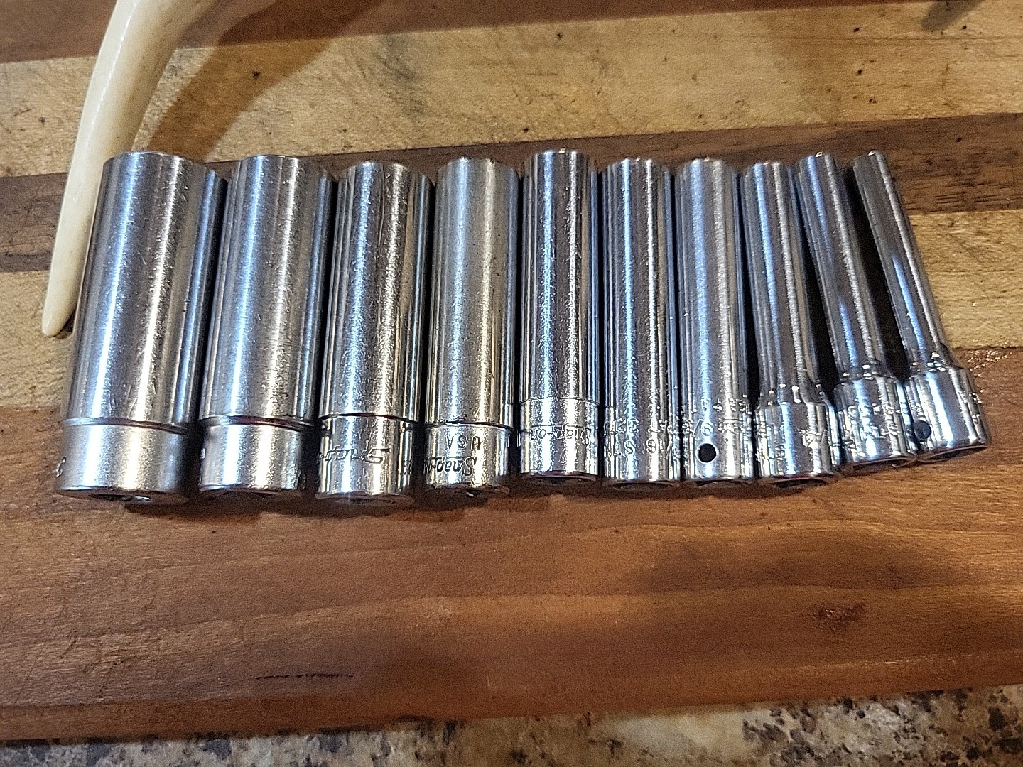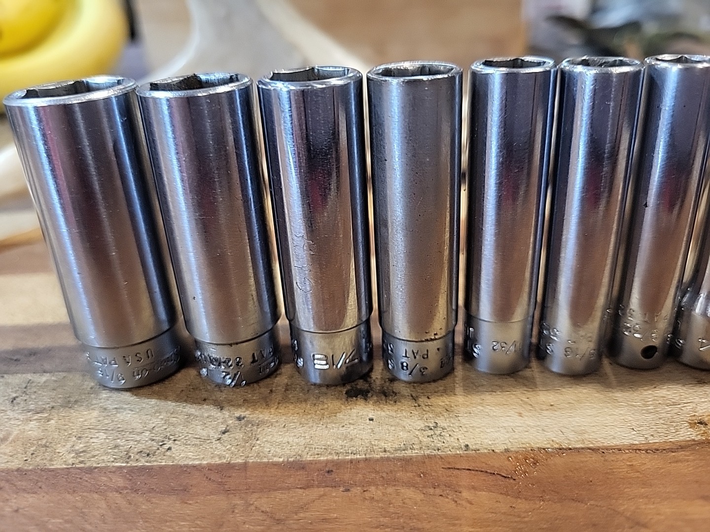 Snap On Tools 1/4" Drive 10 Piece SAE Deep 6 Point Socket Set 110STMY 3/16"-9/16" STM6-STM18. In Good Pre-owned Condition!! Please refer to pictures.