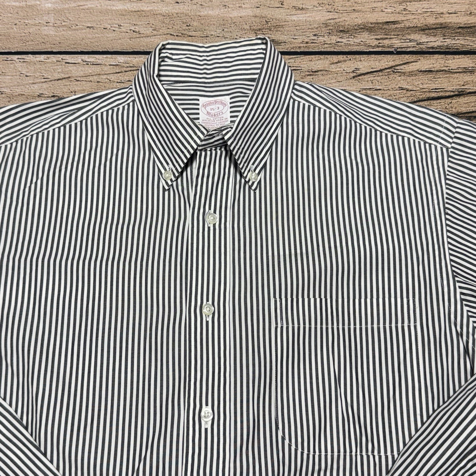 Brooks Brothers Shirt Mens 15 3 White Gray Striped VTG Made in USA