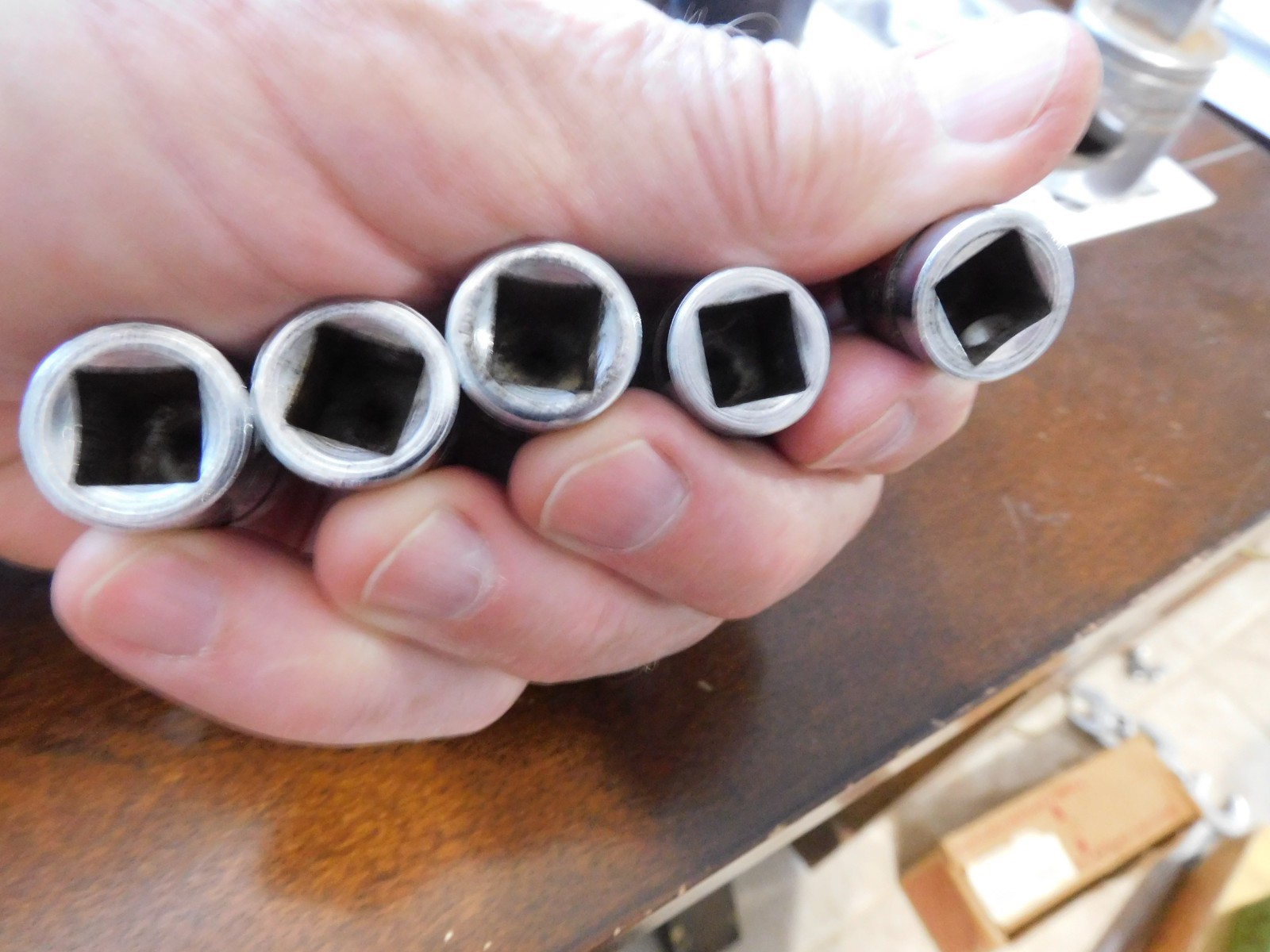 Snap - On 3/8" drive PPM external pipe plug sockets in good used condition. 5 total sockets. There are 2 PPM-412 3/8", PPM- 411 11/32', PPM-409 9/32", PPM- 406 3/16".
